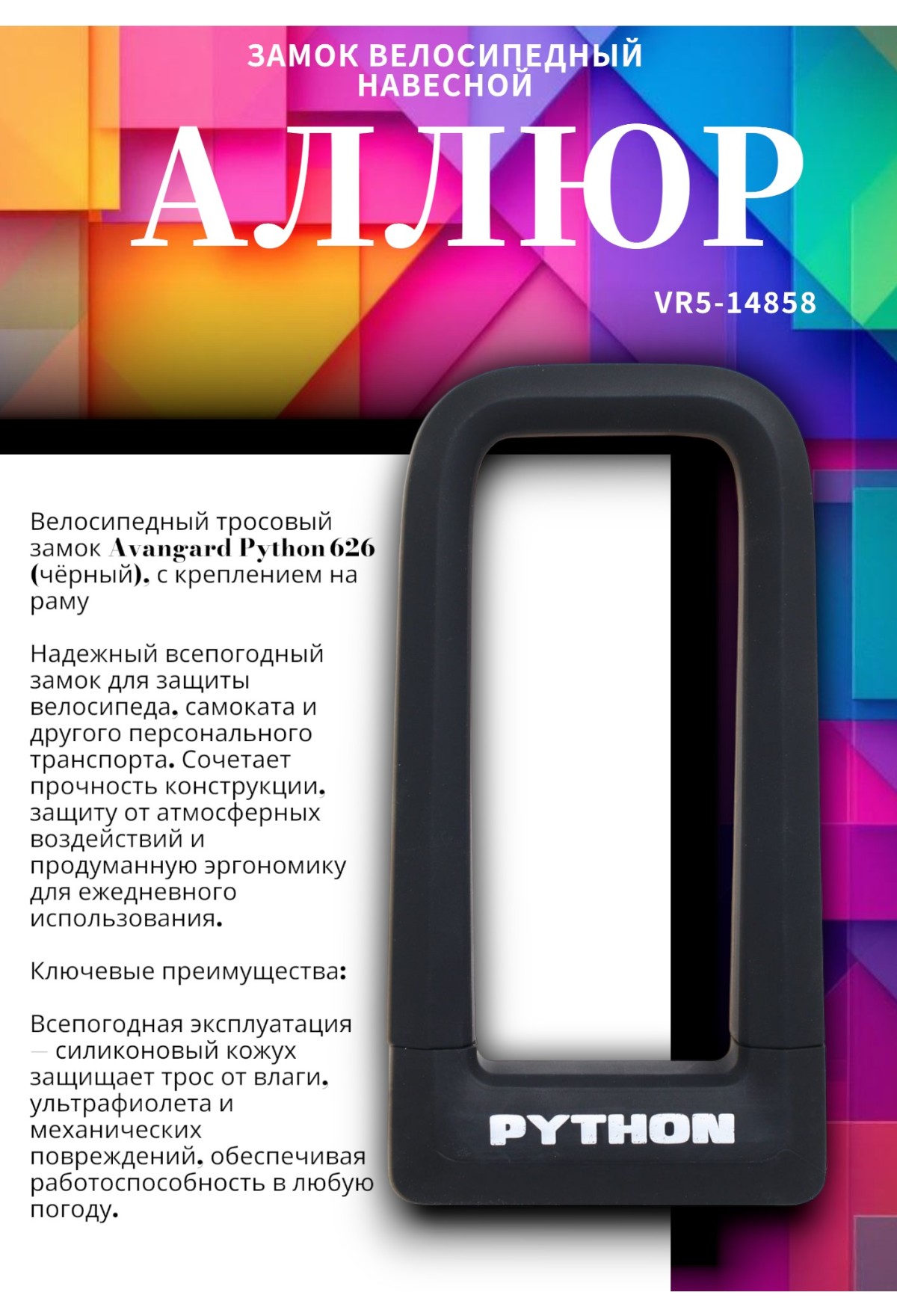 Велосипедный тросовый замок Avangard Python 626 (чёрный), с креплением на раму