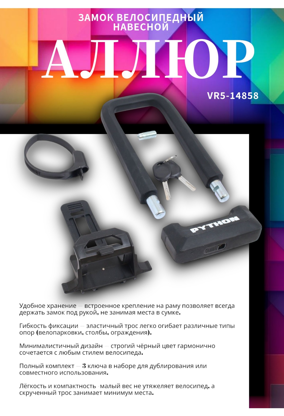 Комплектация: замок, крепление на раму, 3 ключа, упаковка.