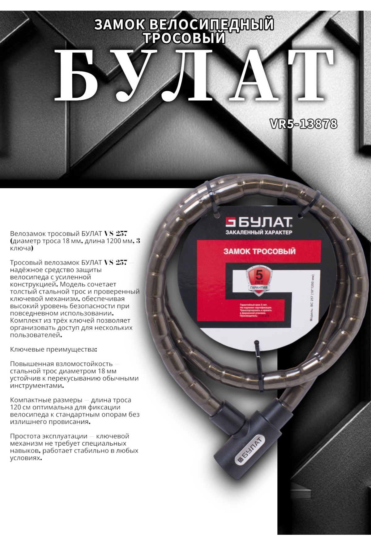 Почему стоит выбрать тросовый велозамок БУЛАТ VS‑257