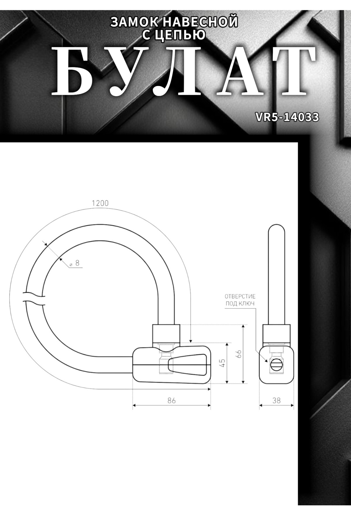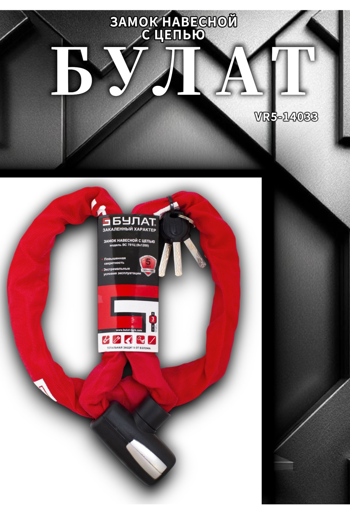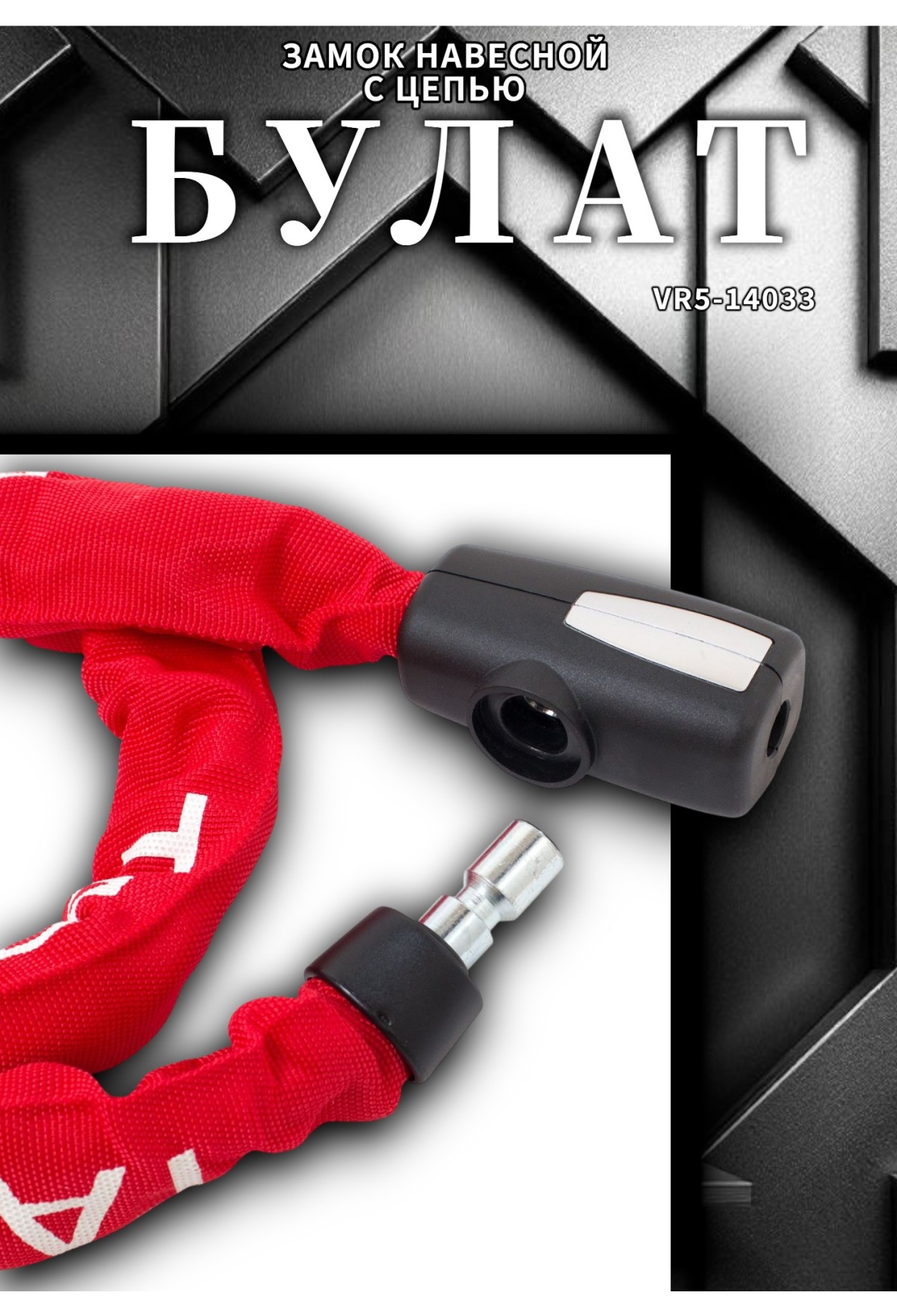 Навесной замок БУЛАТ VS‑781C (с цепью, диаметр дужки 8 мм, 3 ключа)