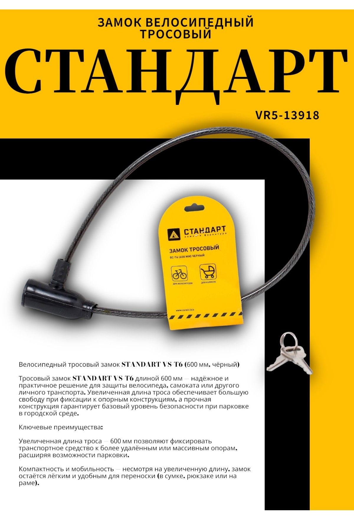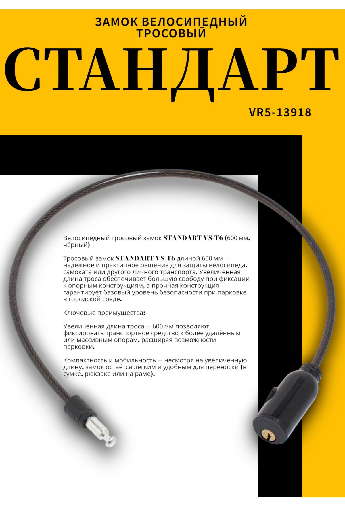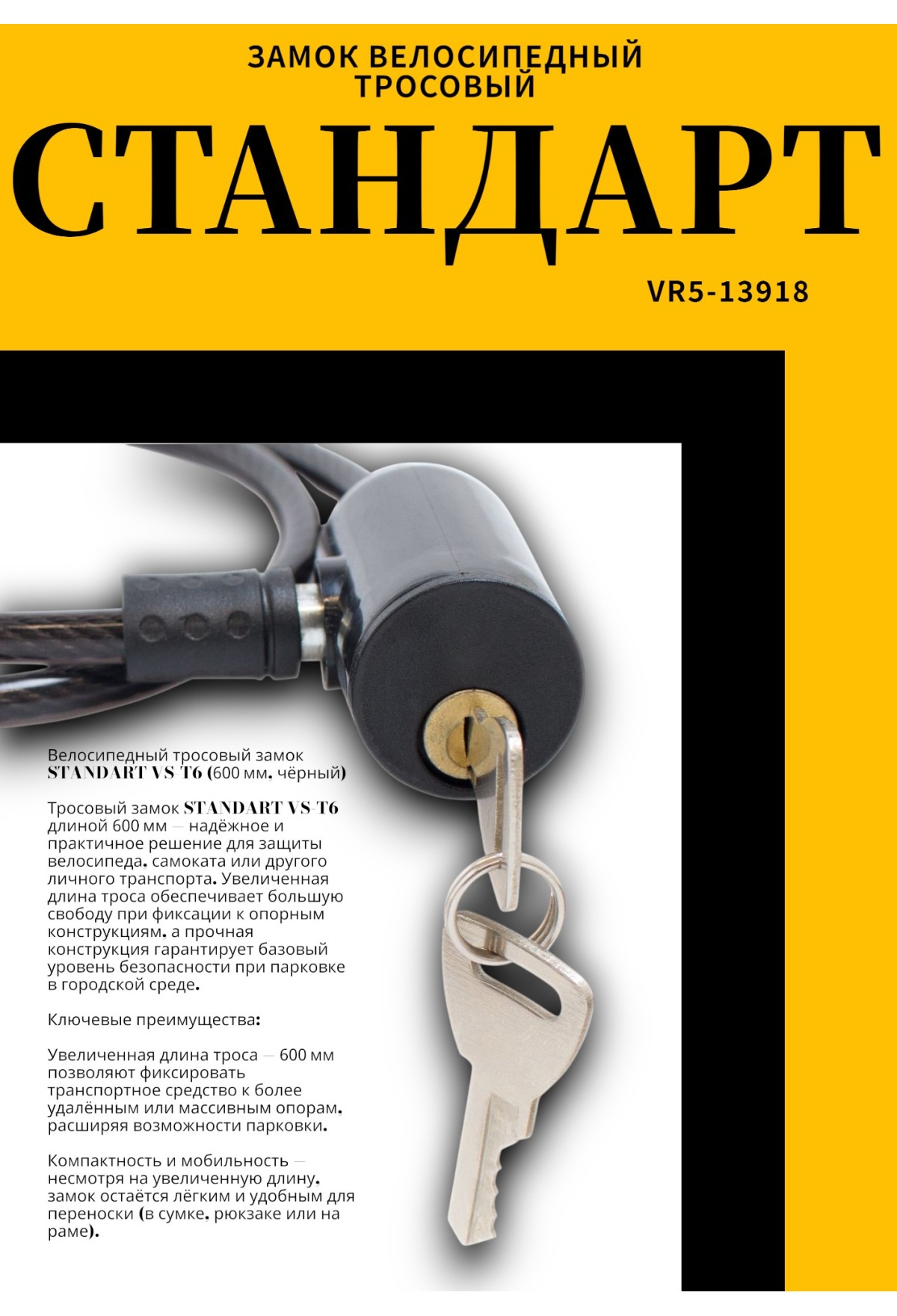 Почему стоит выбрать тросовый замок STANDART VS‑T6 (600 мм, чёрный)