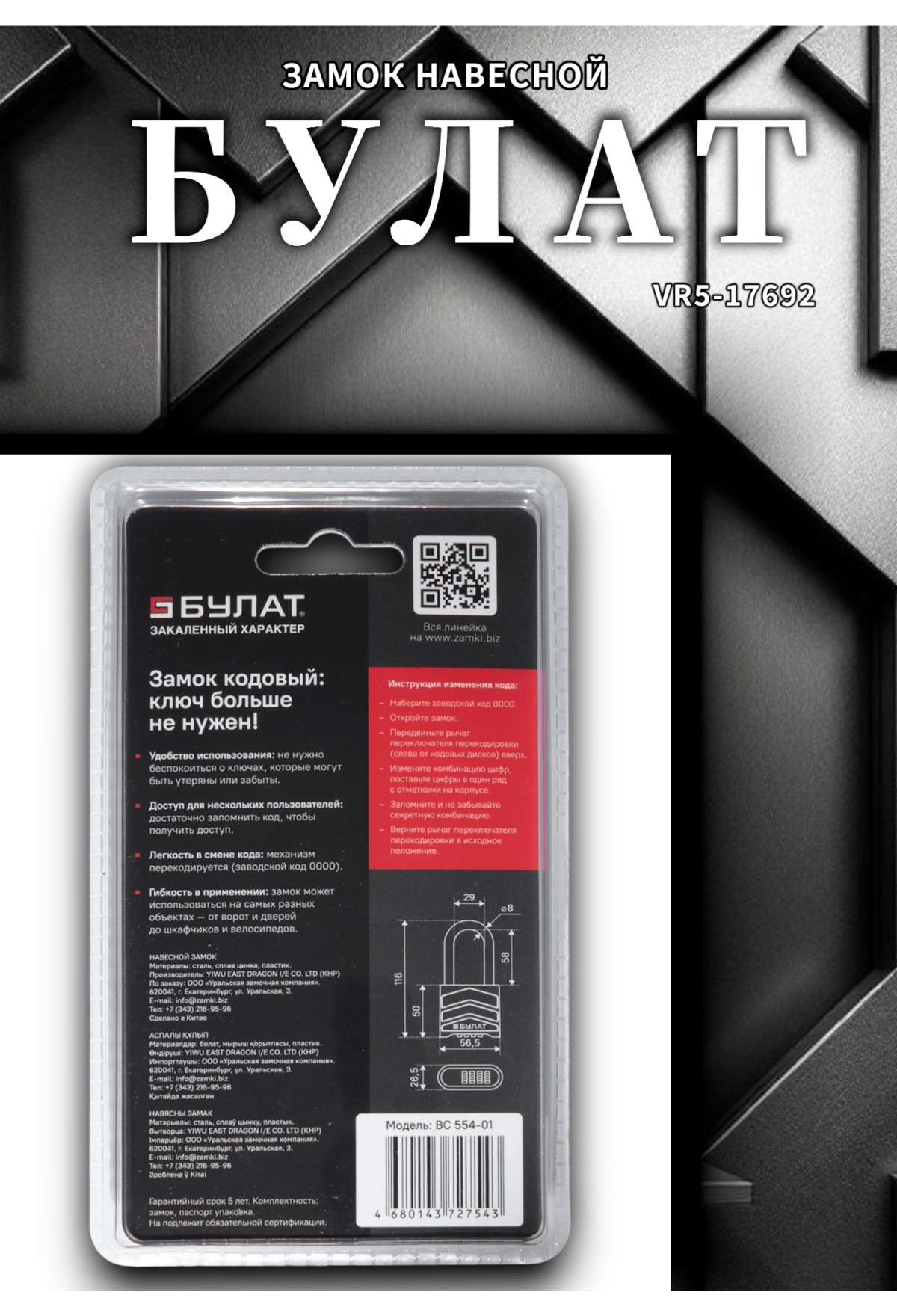 Почему стоит выбрать навесной кодовый замок БУЛАТ VS‑554‑01