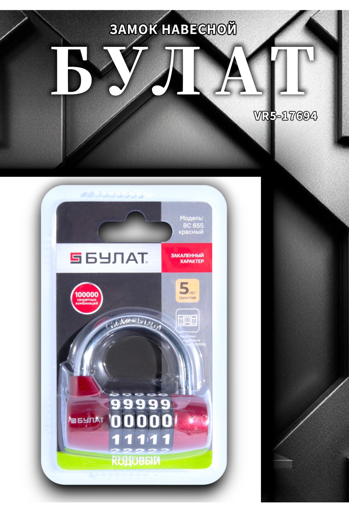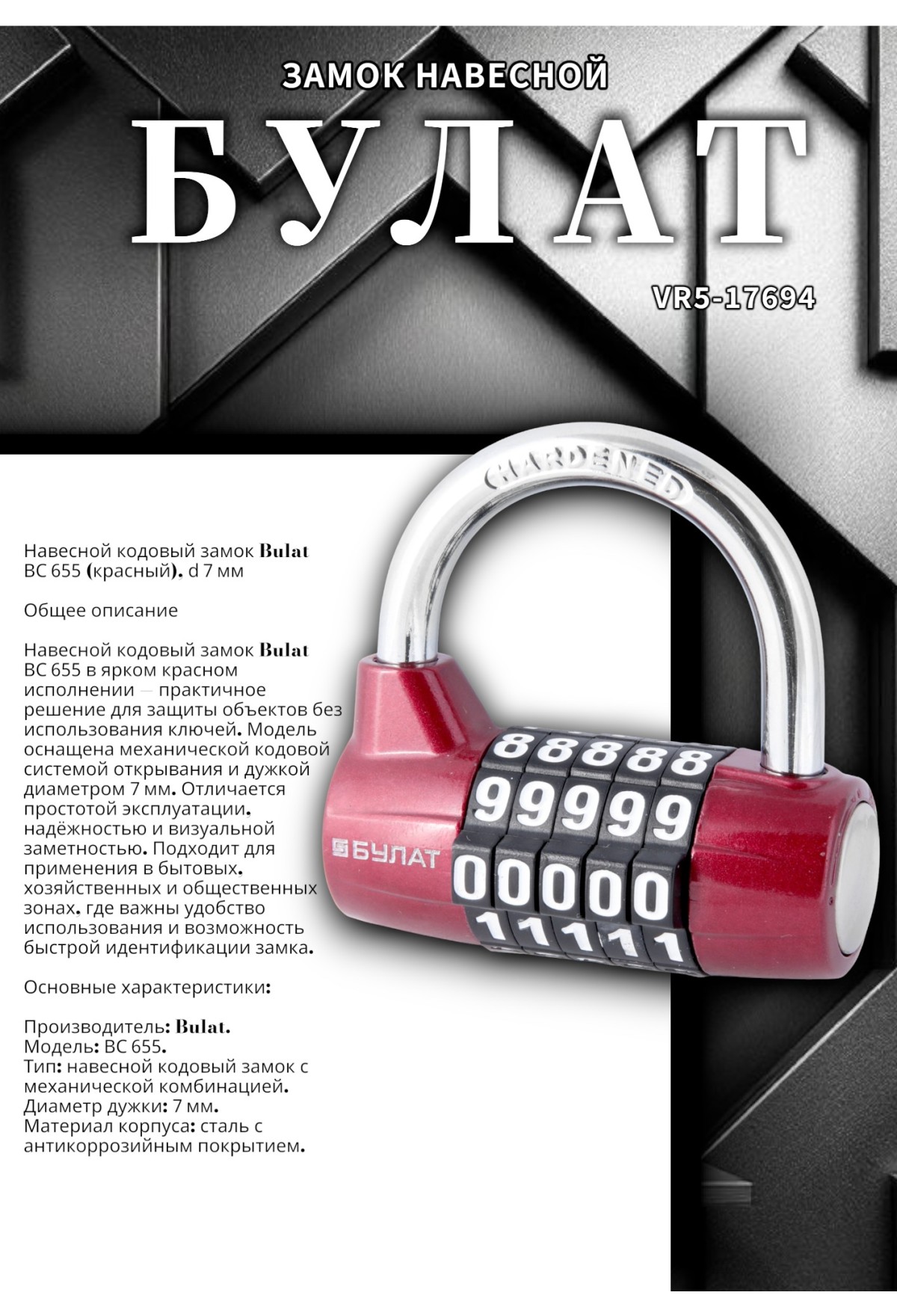 навесной кодовый замок Bulat ВС 655 (красный) — 1 шт.;