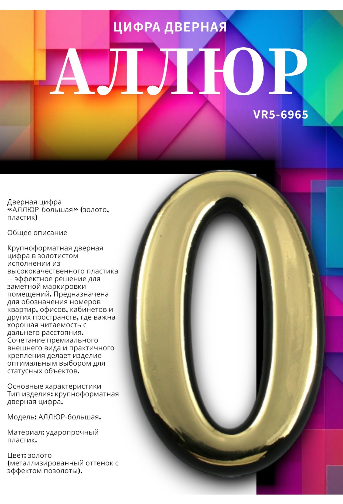 Тэги: Цифра дверная АЛЛЮР БОЛЬШАЯ пластик "0" золото (1000, 50), VR5-6965, Аллюр, ✹ Цифры дверные, ✹ Дверная фурнитура