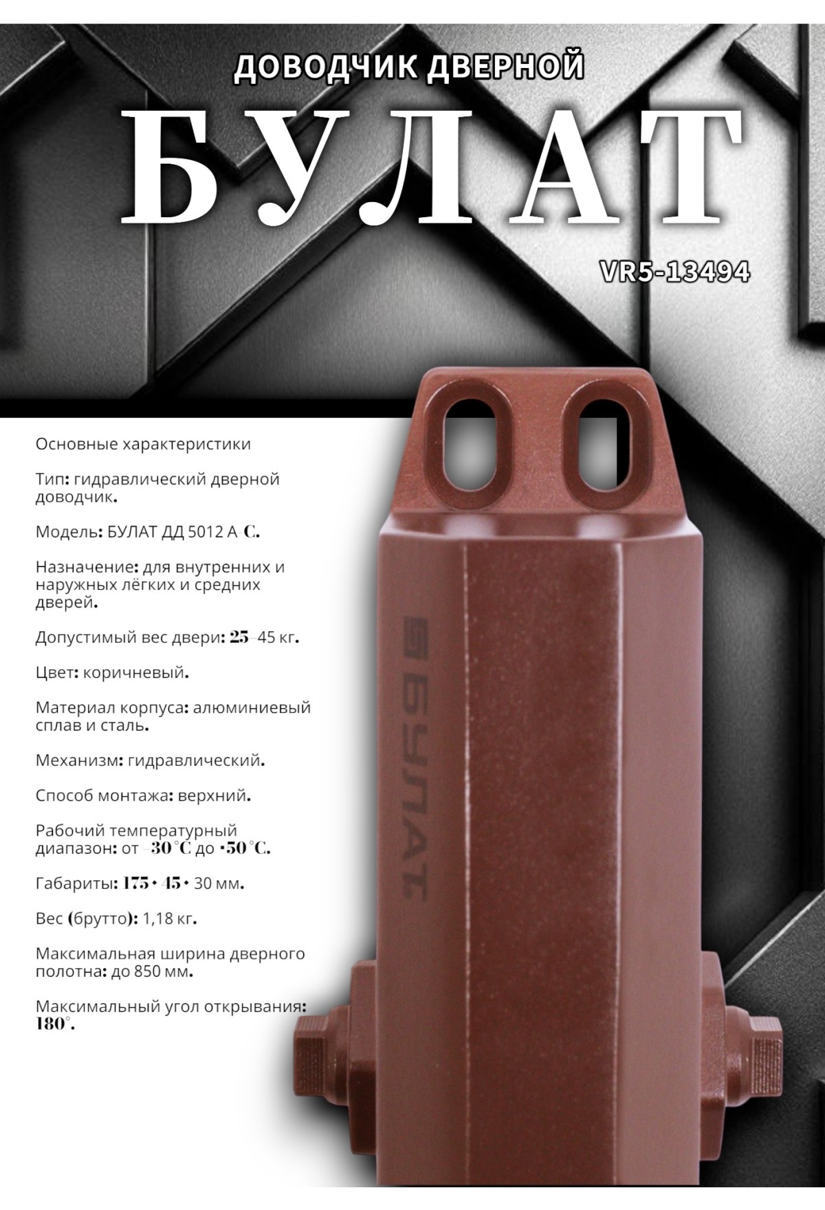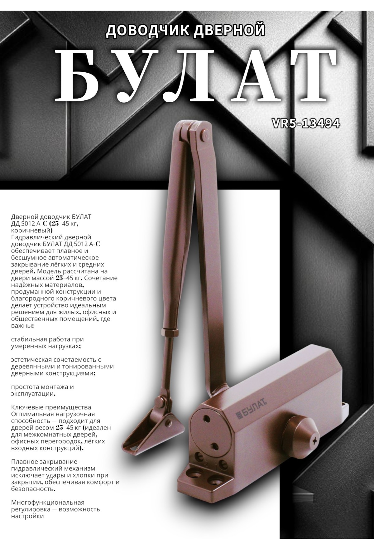 Дверной доводчик БУЛАТ ДД 5012 A‑C (25–45 кг, коричневый)
