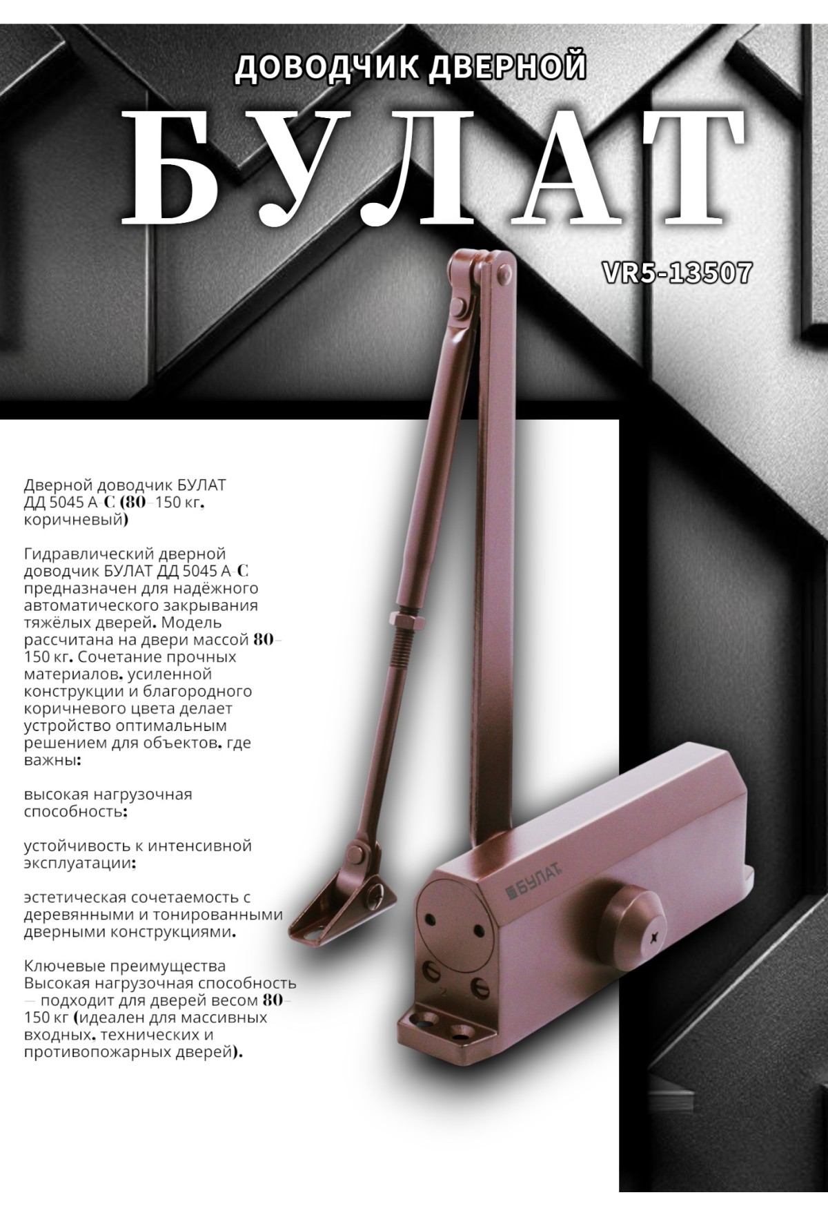 Дверной доводчик БУЛАТ ДД 5045 A‑C (80–150 кг, коричневый)