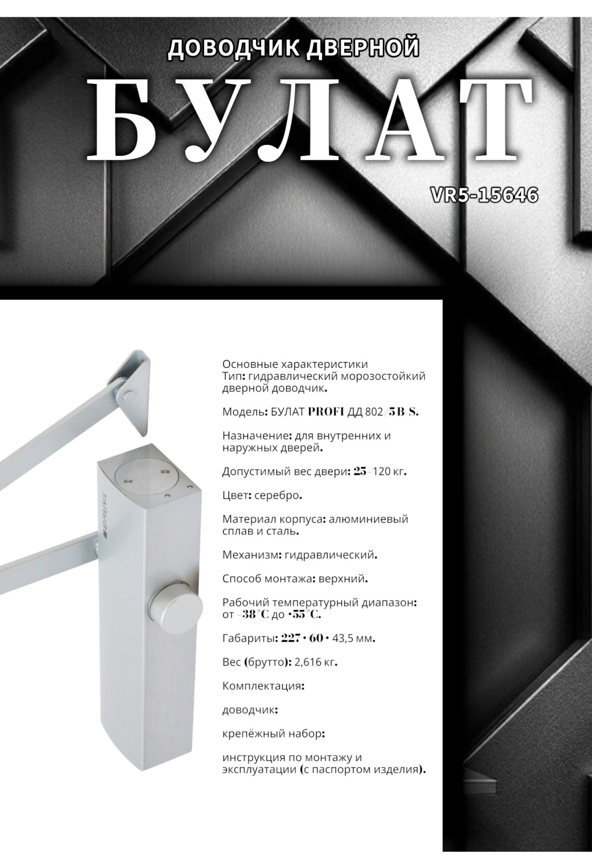 Почему стоит выбрать доводчик БУЛАТ PROFI ДД 802/5 B‑S