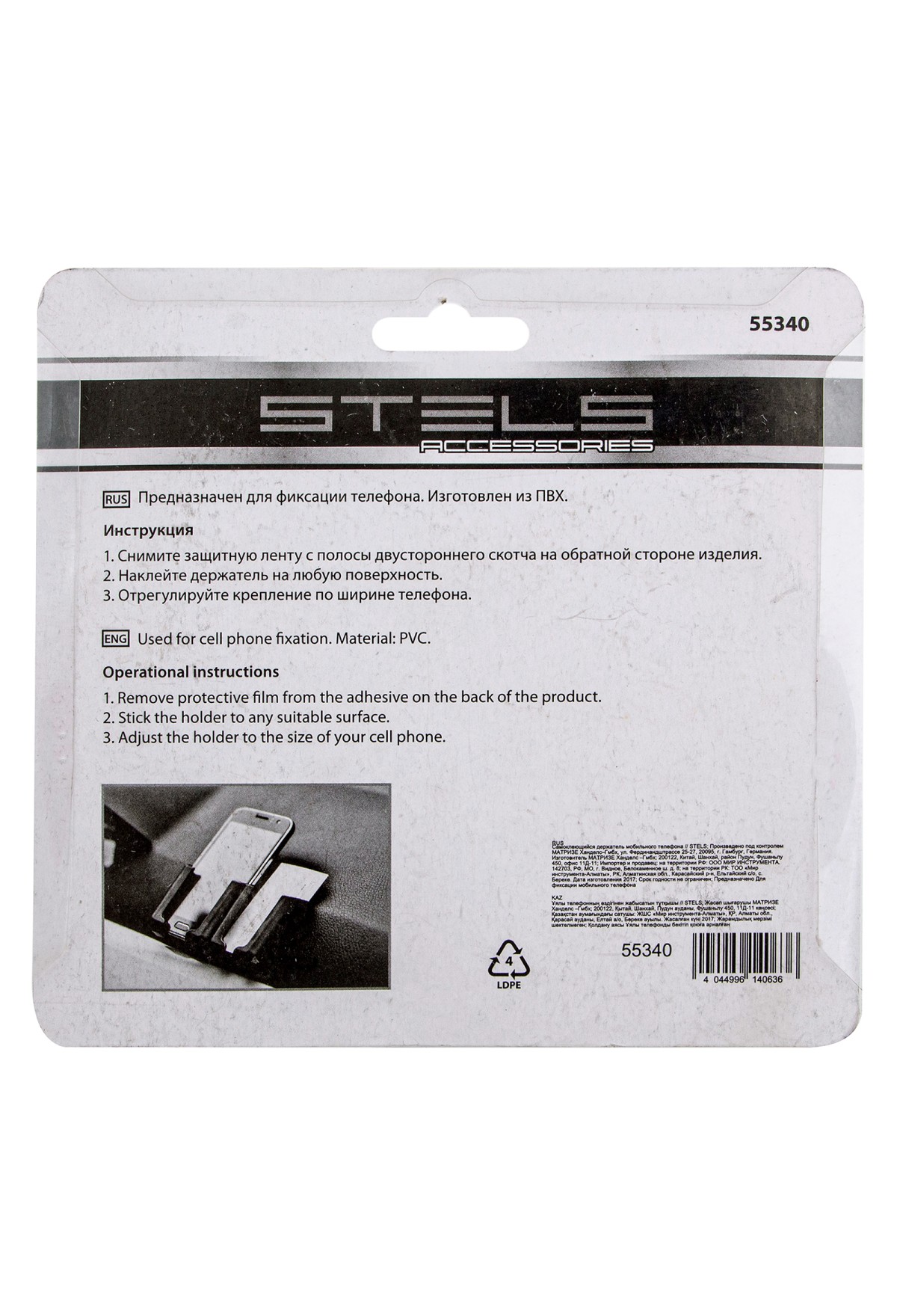 Самоклеящийся держатель мобильного телефона Stels 55340 предназначен для использования в автомобиле. Крепится к любому удобному месту на приборной панели и обеспечивает быстрый доступ к гаджету. Держатель имеет два «кармана», в один из которых можно положить мобильный телефон, а во второй — банковские карты.