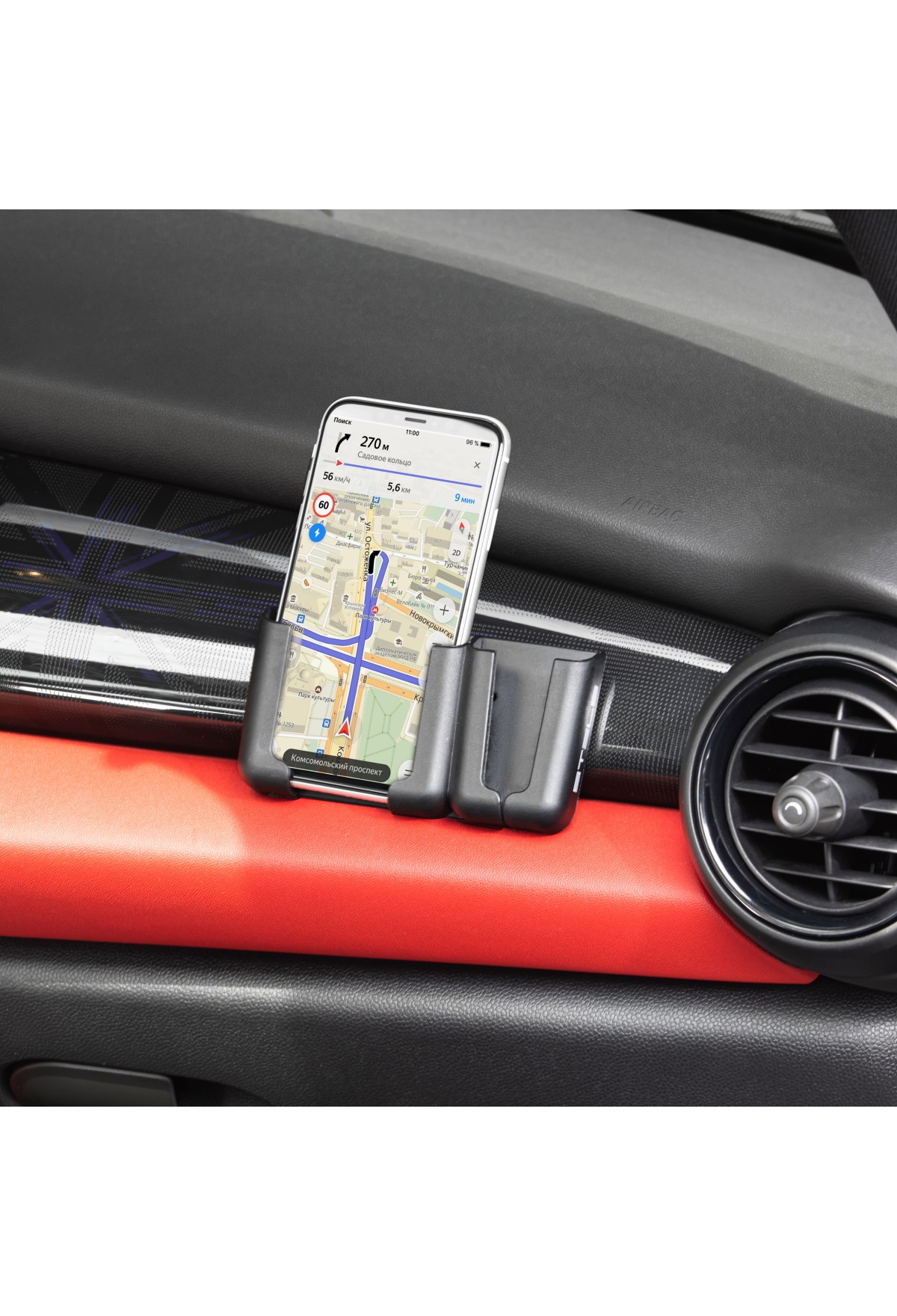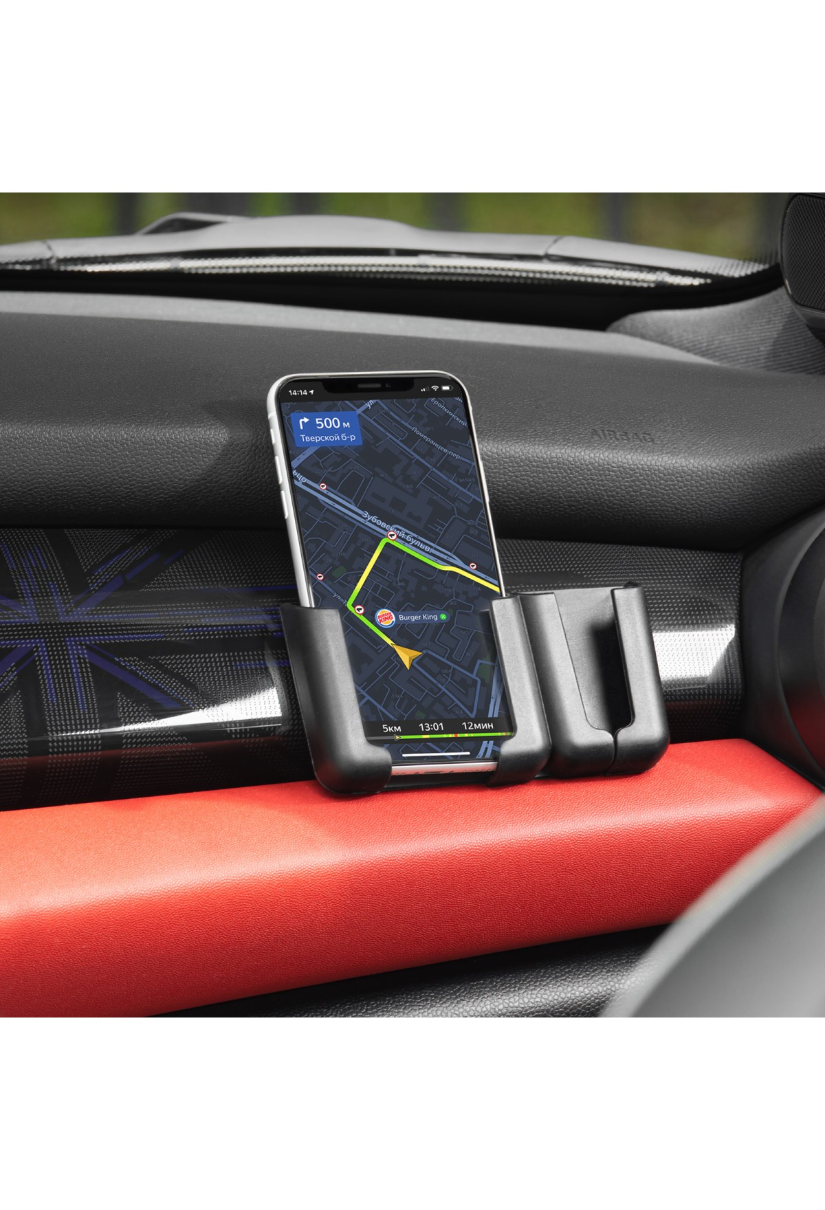- Надежность — держатель прочно фиксируется благодаря самоклеящейся основе, а после снятия не оставляет следов на приборной панели.