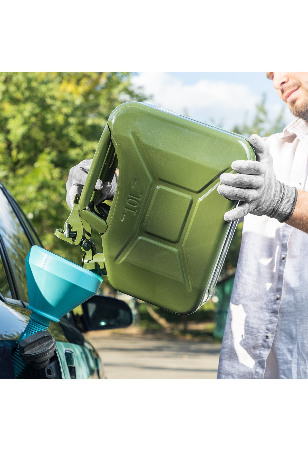 Металлическая канистра STELS 53144 объемом 10 литров предназначена для хранения и транспортировки бензина и других горюче-смазочных материалов (ГСМ). Ее можно разместить в багажнике автомобиля или поставить в гараже. Канистра пригодится для заправки авто и садовой бензотехники, разрешен залив топлива на АЗС.