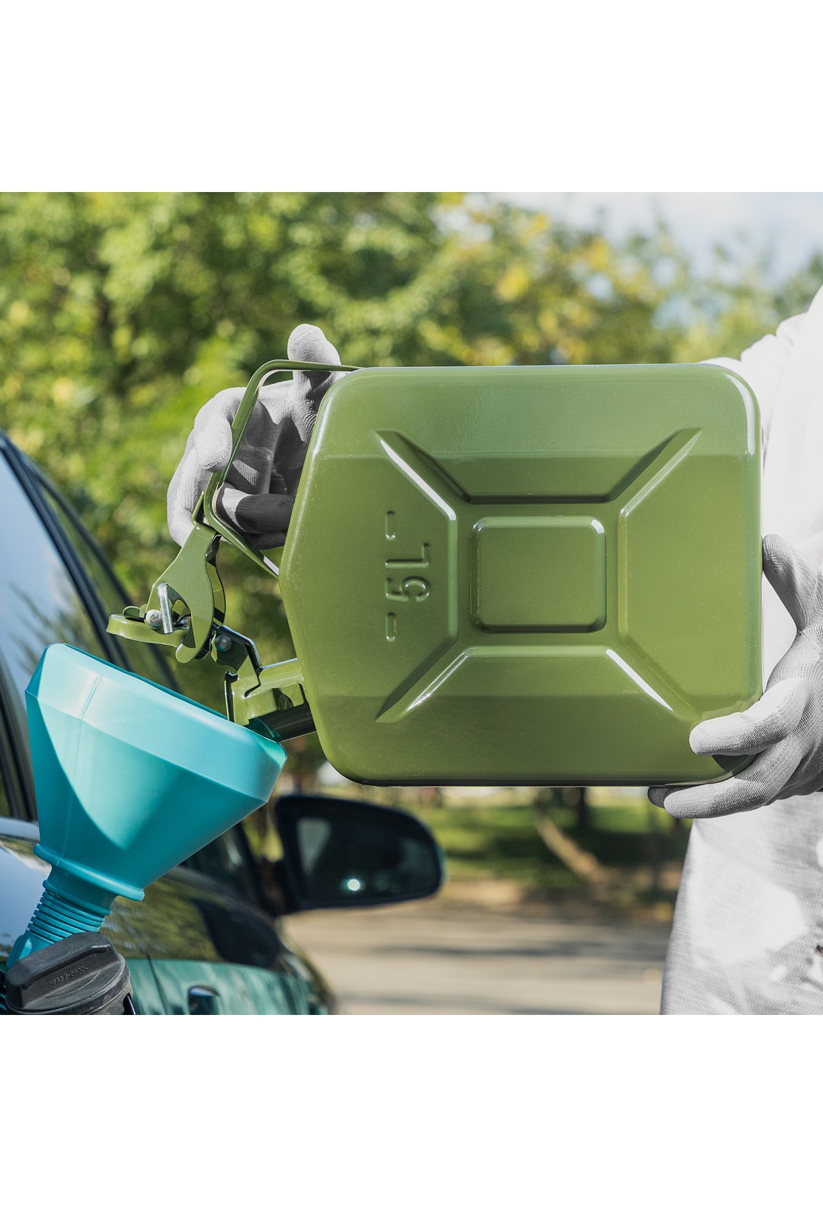 Металлическая канистра STELS 53143 объемом 5 литров предназначена для хранения и транспортировки бензина и других горюче-смазочных материалов (ГСМ). Ее можно разместить в багажнике автомобиля или поставить в гараже. Канистра пригодится для заправки авто и садовой бензотехники, разрешен залив топлива на АЗС.