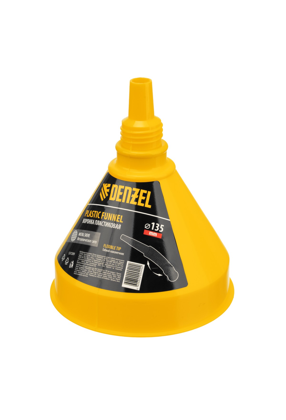 Технические характеристики Воронка пластиковая 135 мм с металлическим ситом и гибким наконечником Denzel