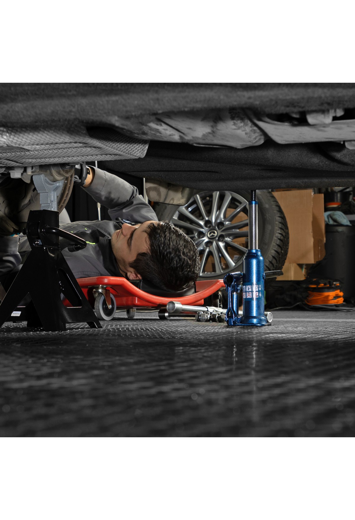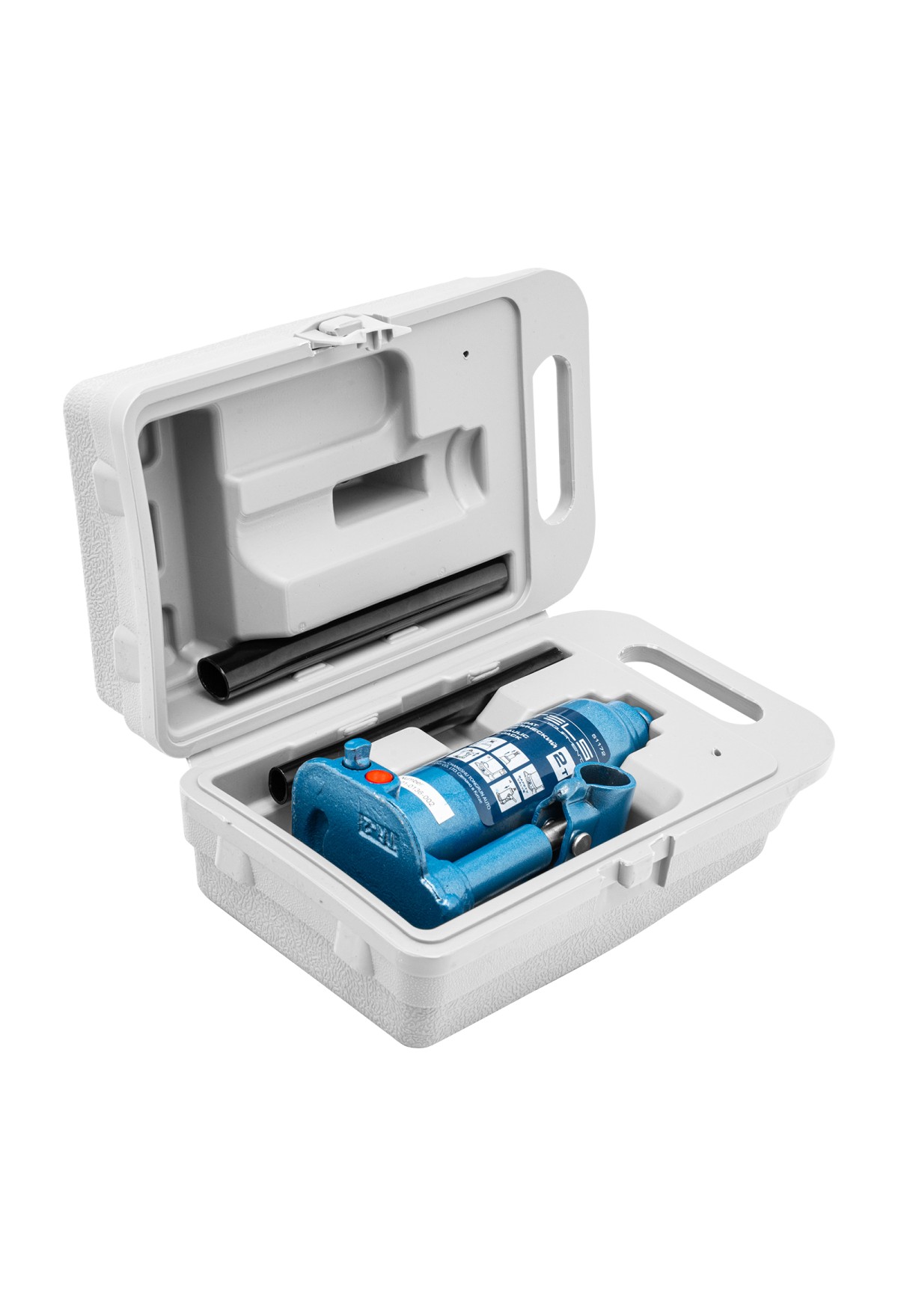 - Удобное хранение и транспортировка — домкрат поставляется в пластиковом кейсе.