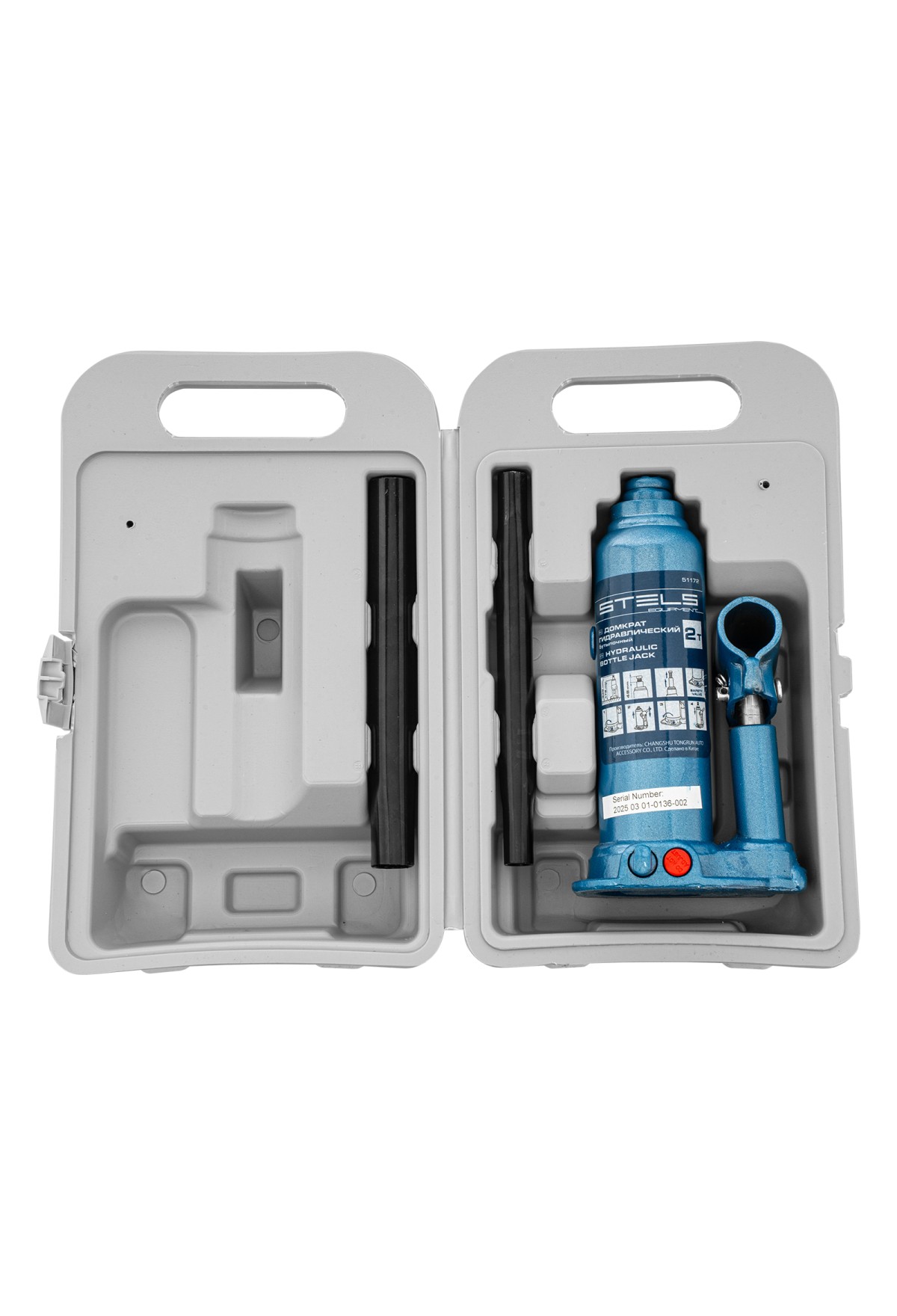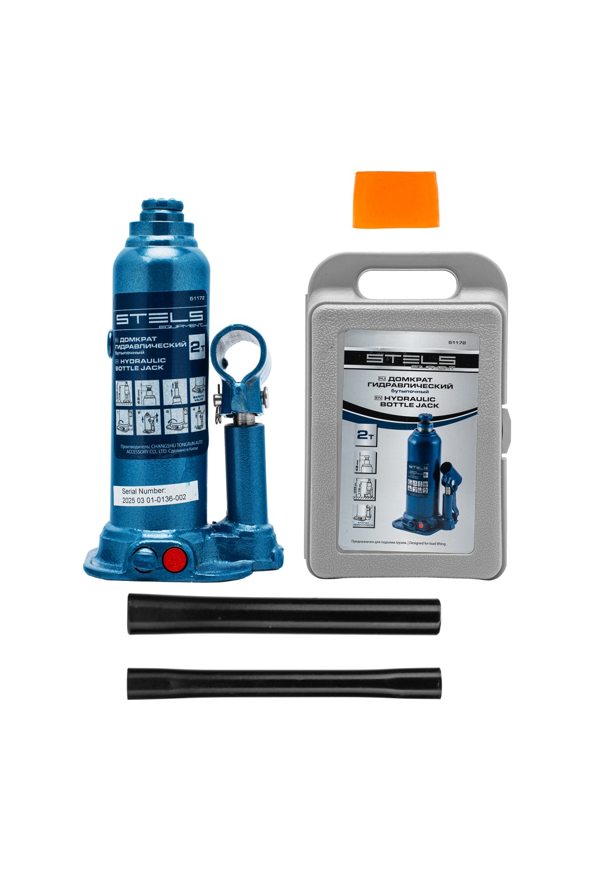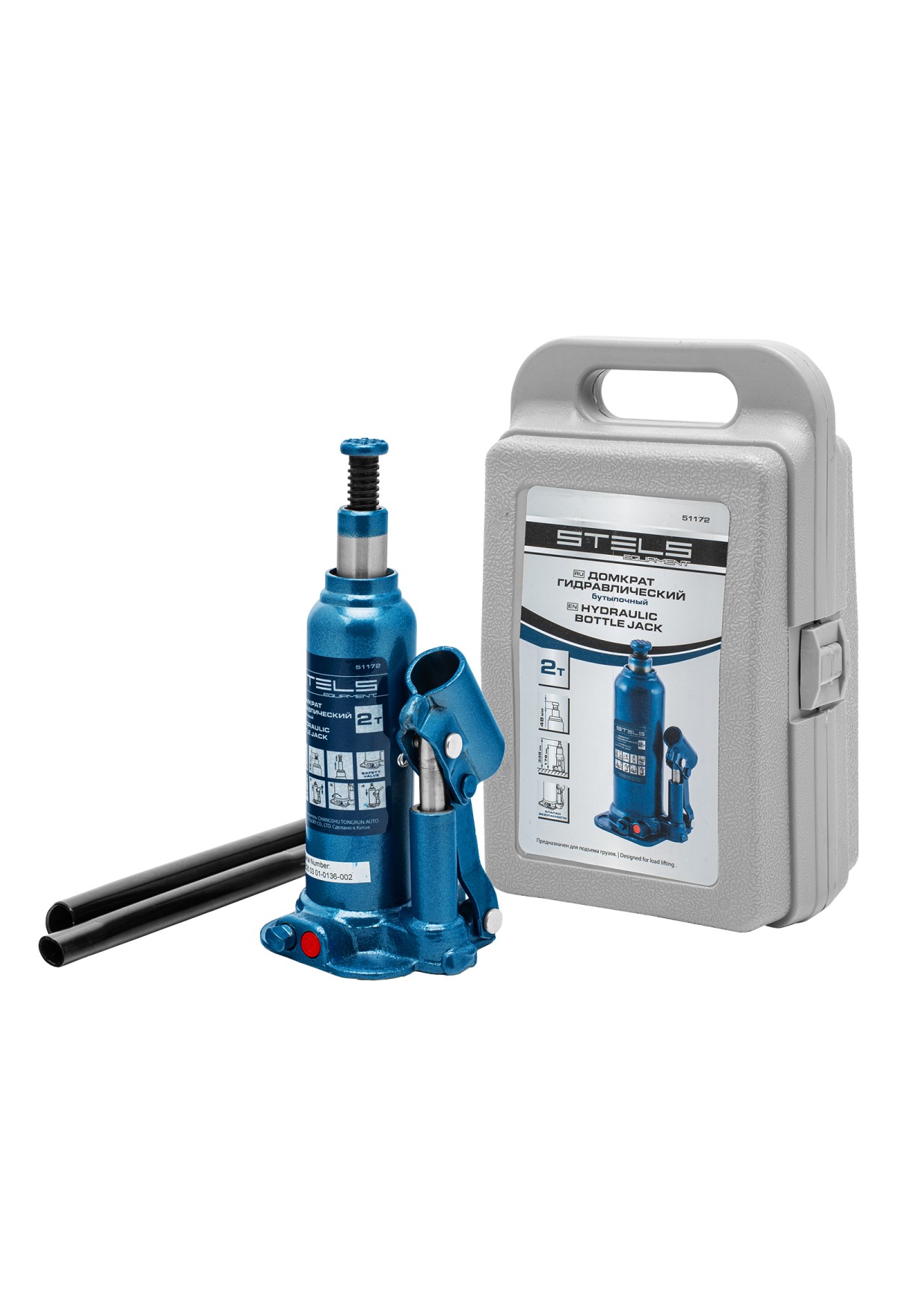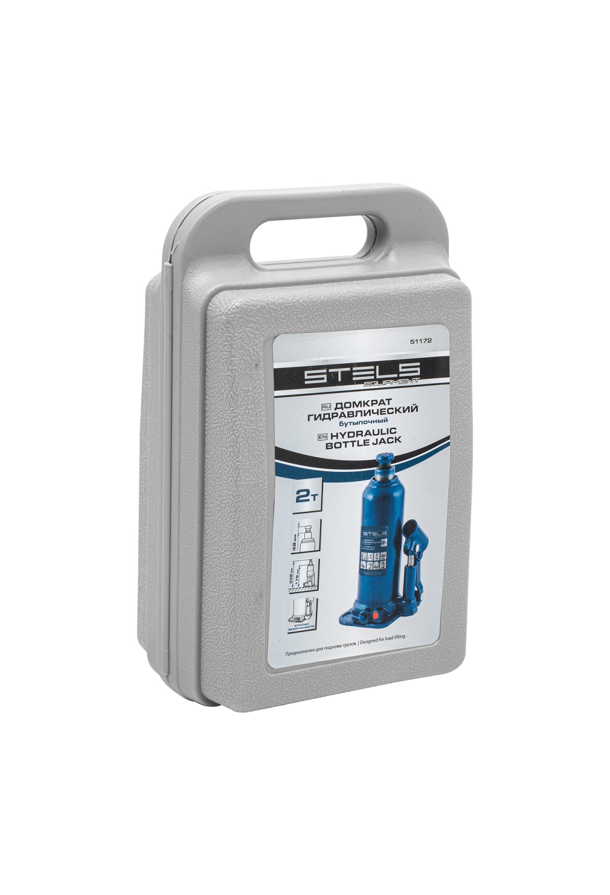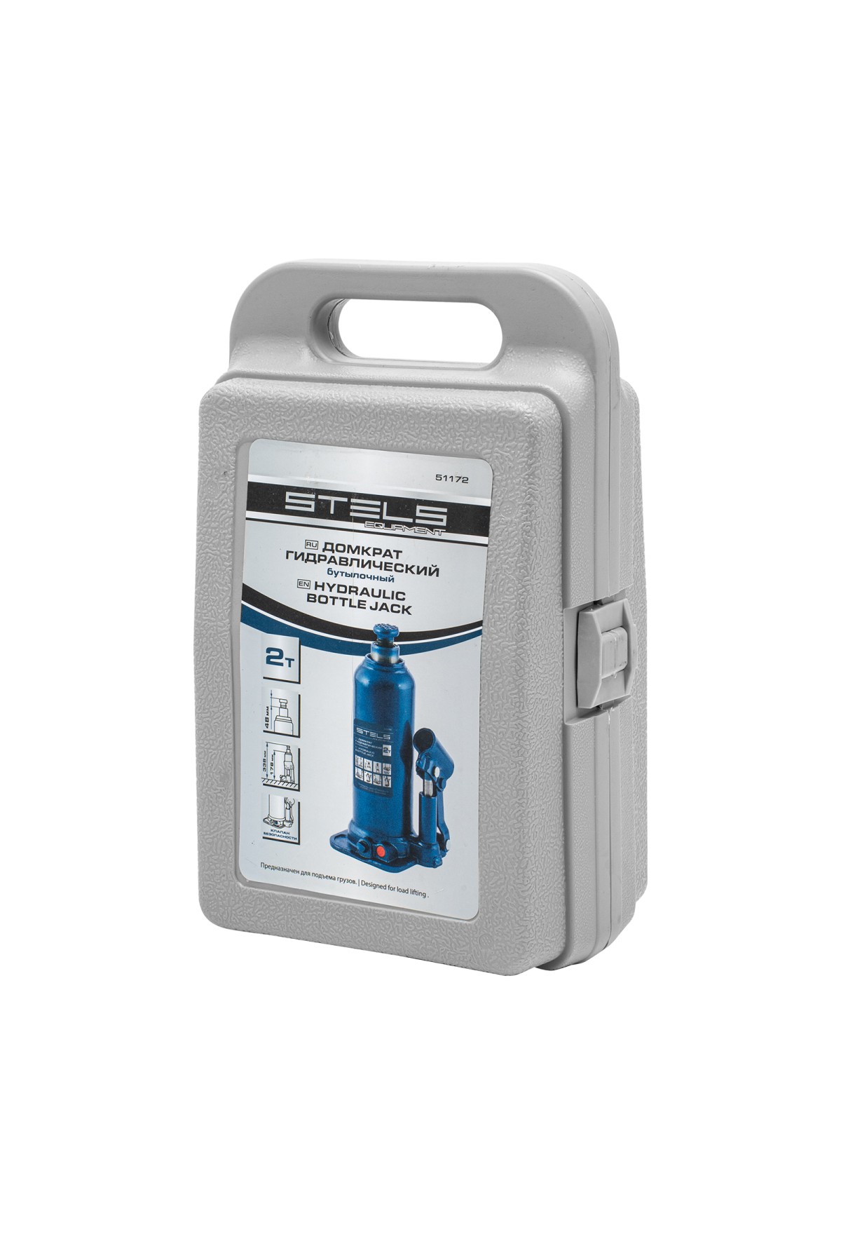 Гидравлический бутылочный домкрат Stels 51172 в пластиковом кейсе предназначен для поднятия грузов весом до 2 т на высоту 178-338 мм. Он не занимает много места и легко помещается в багажник, поэтому его можно брать с собой в дорогу или хранить в гараже. Используется для самостоятельного ремонта авто, также подходит для профессионального применения на станциях технического обслуживания.