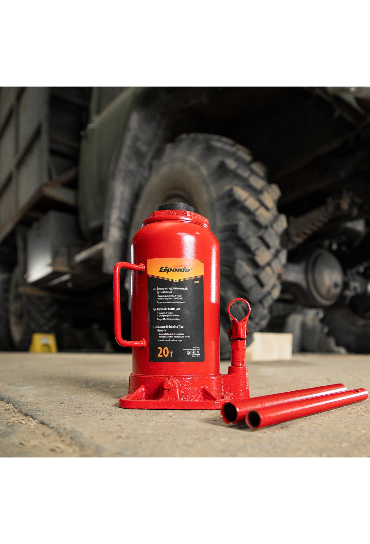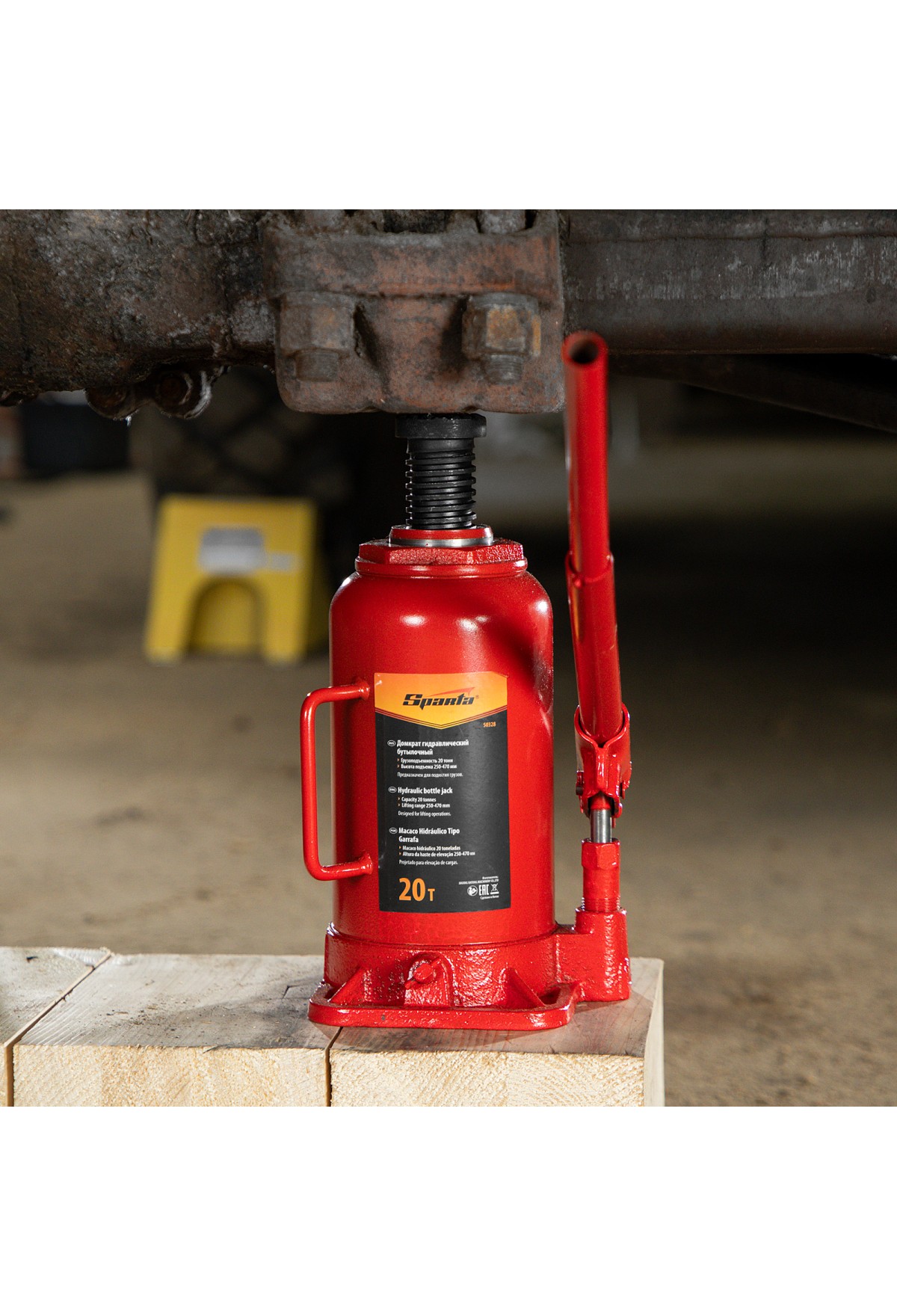 Домкрат гидравлический бутылочный, 20 т, h подъема 250-470 мм Sparta