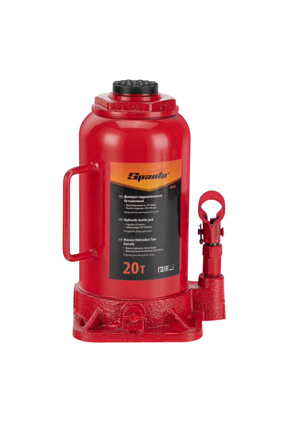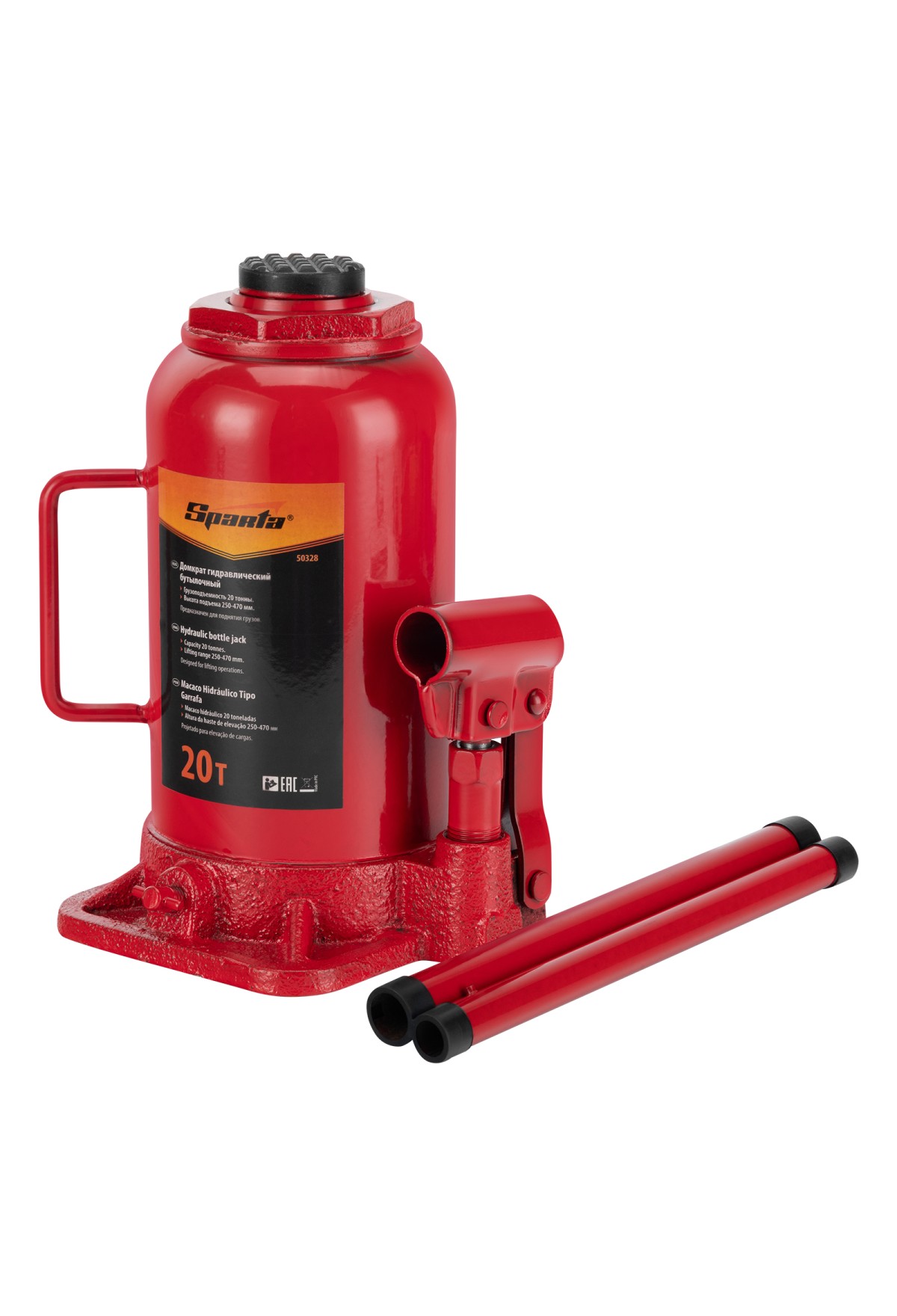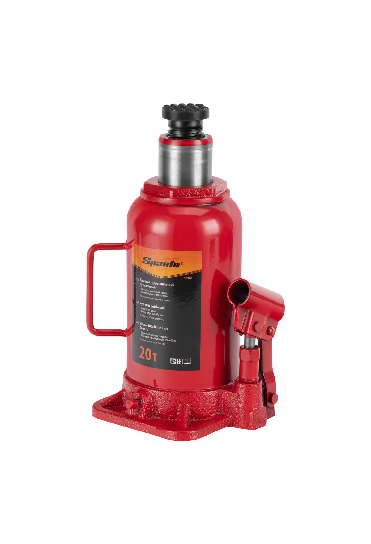 Технические характеристики Домкрат гидравлический бутылочный, 20 т, h подъема 250-470 мм Sparta