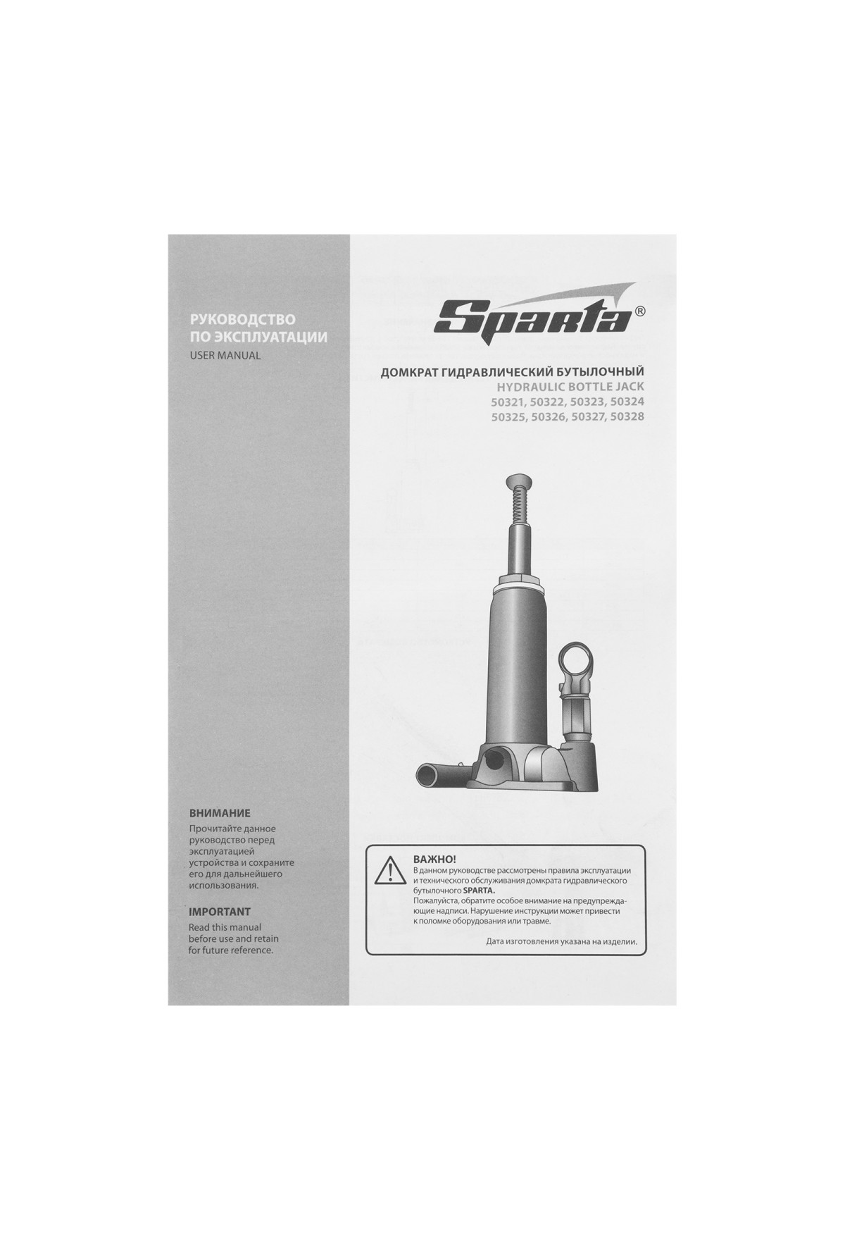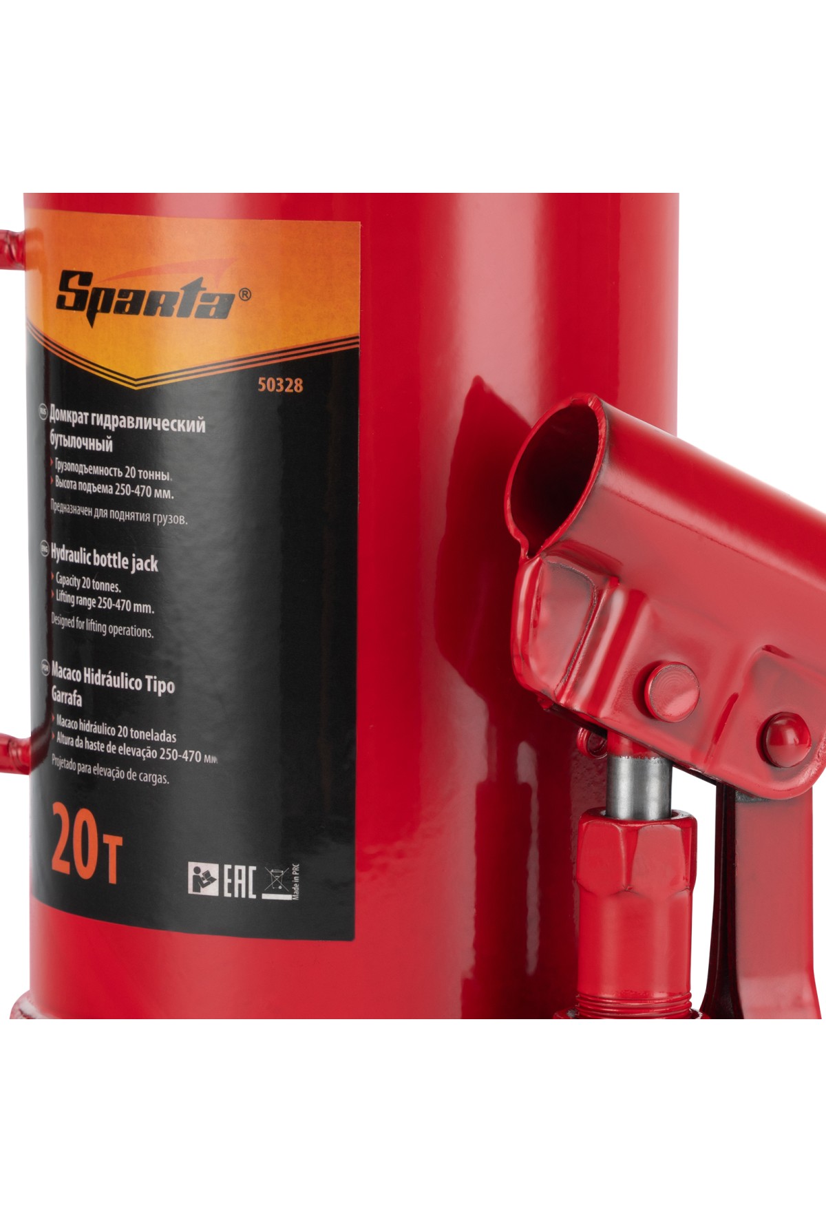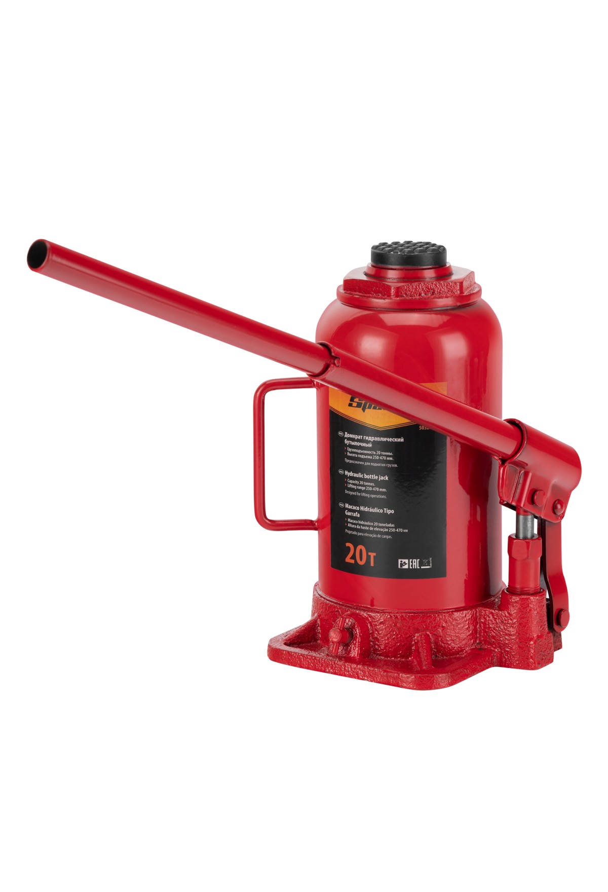 Технические характеристики Домкрат гидравлический бутылочный, 20 т, h подъема 250-470 мм Sparta