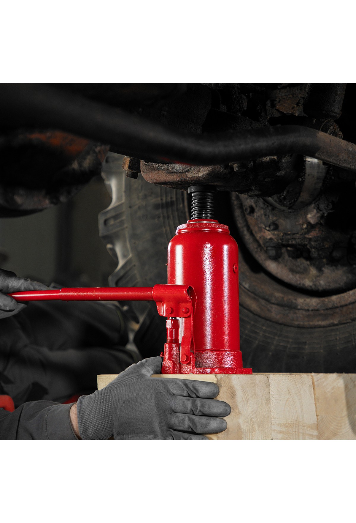 - Удобное хранение и транспортировка — домкрат оборудован съемным рычагом и весит 10,1 кг.