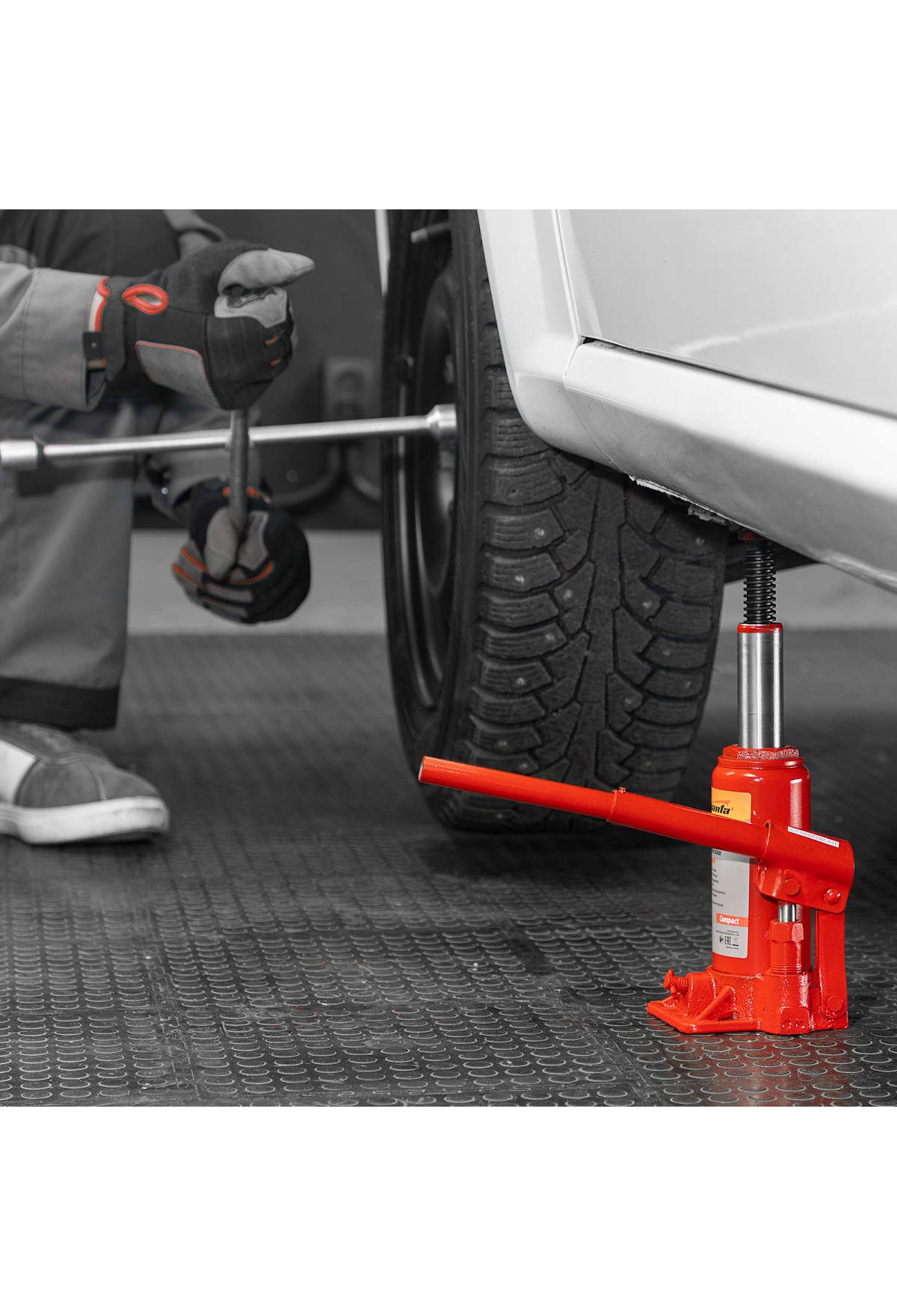 - Удобное хранение и транспортировка — домкрат весит 2,98 кг и не занимает много места благодаря съемному рычагу.