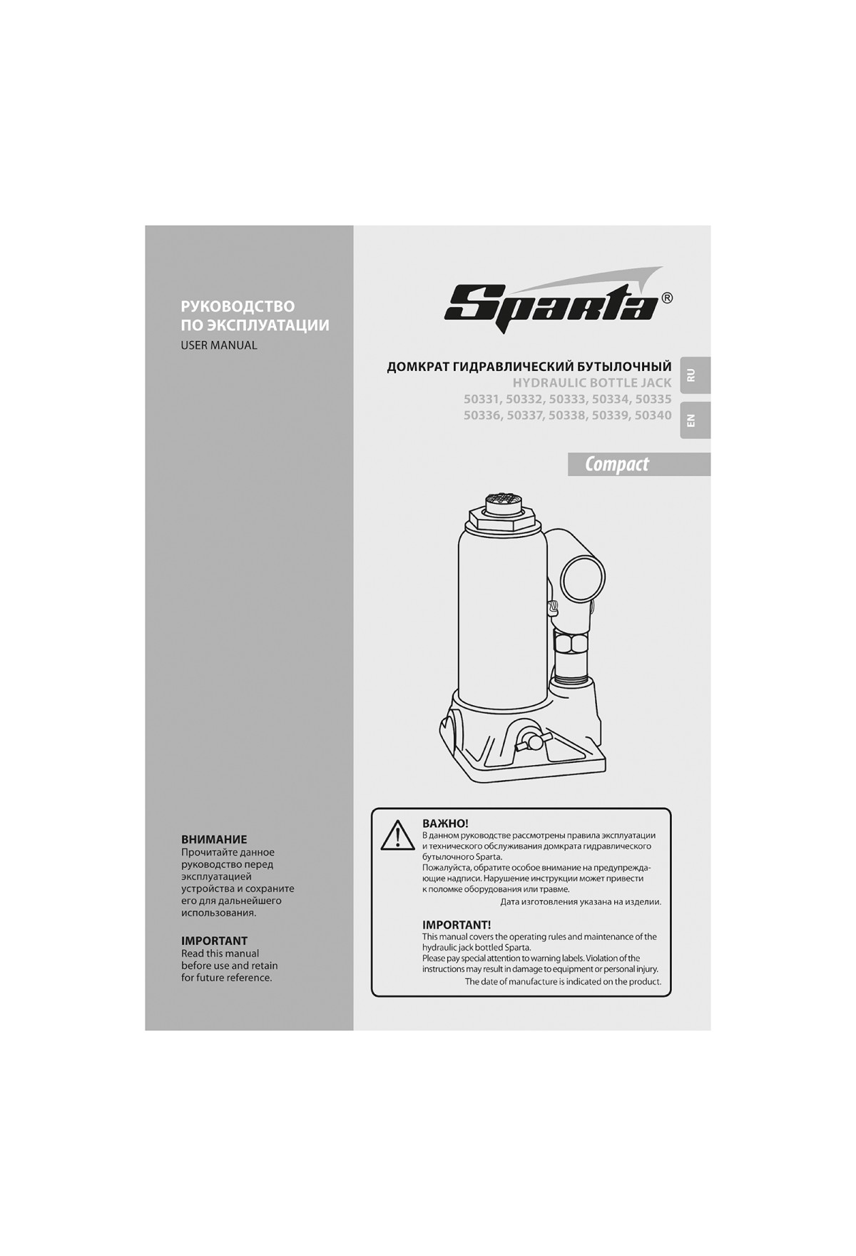 Технические характеристики Домкрат гидравлический бутылочный 5 т, h подъема 180-340 мм Sparta Compact