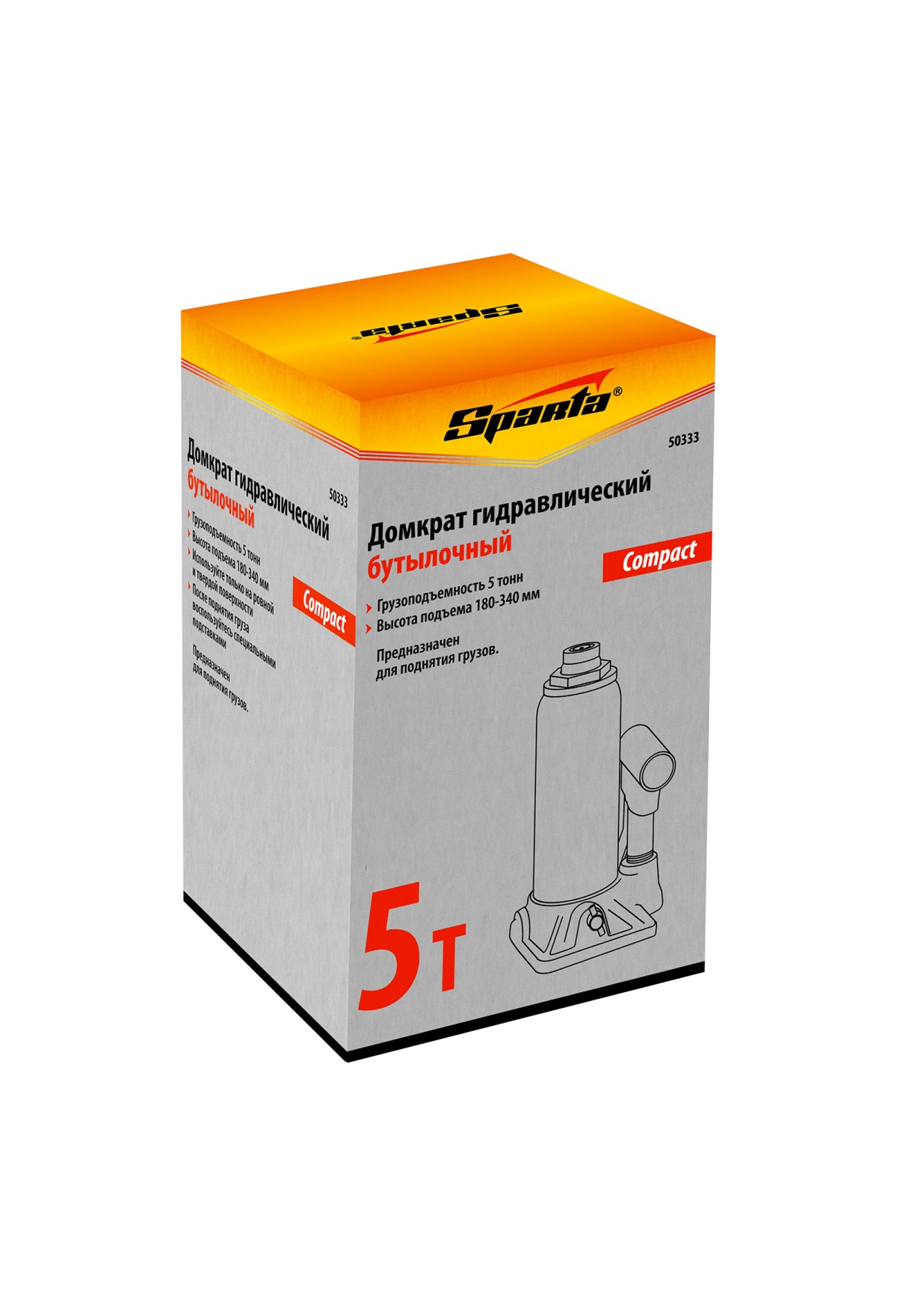 Домкрат гидравлический бутылочный 5 т, h подъема 180-340 мм Sparta Compact