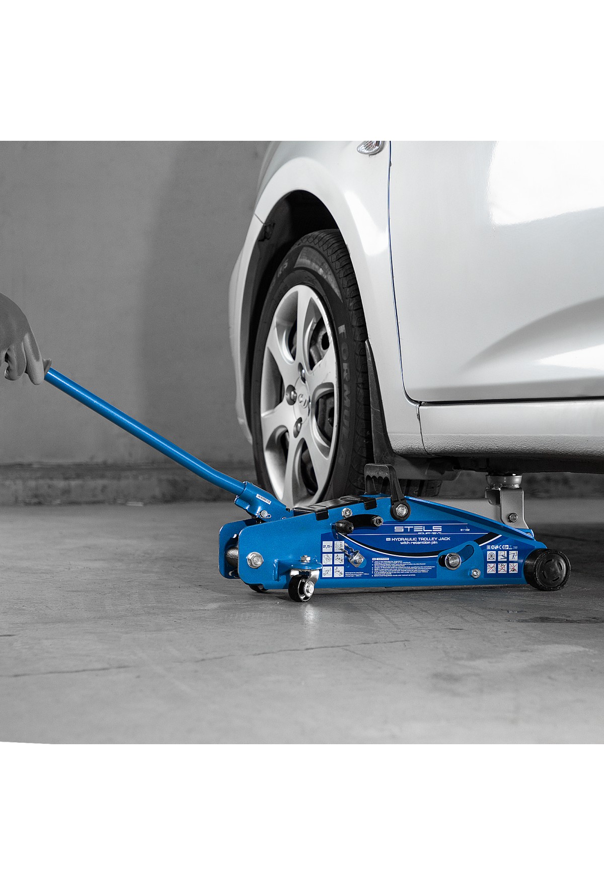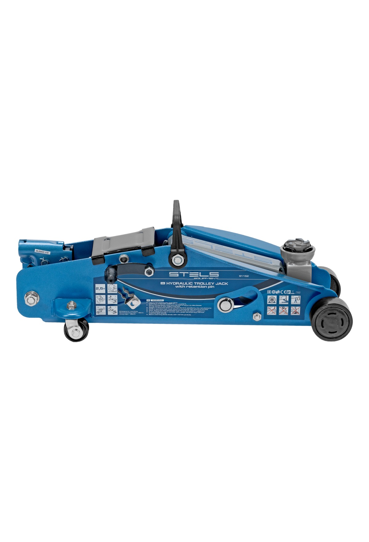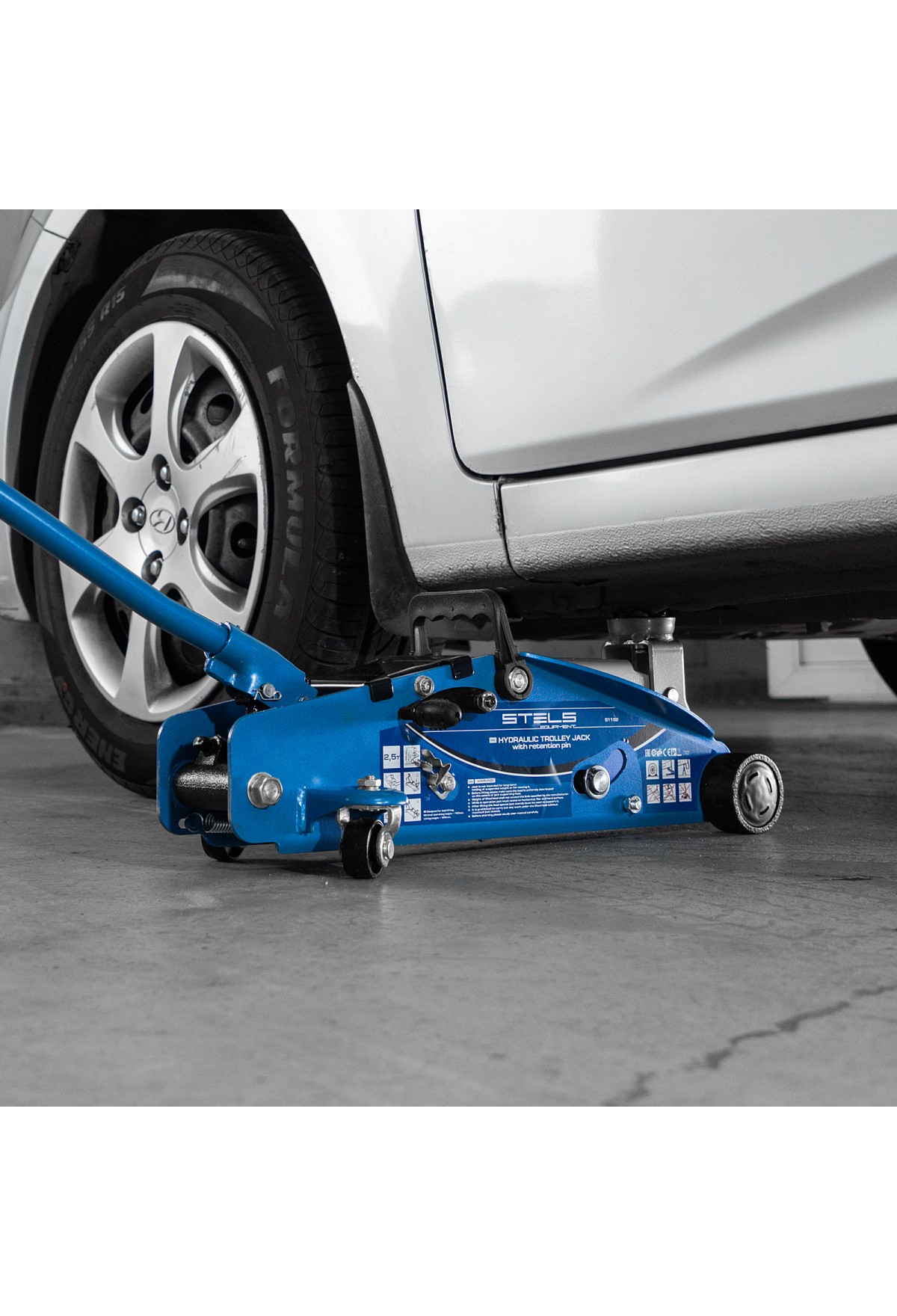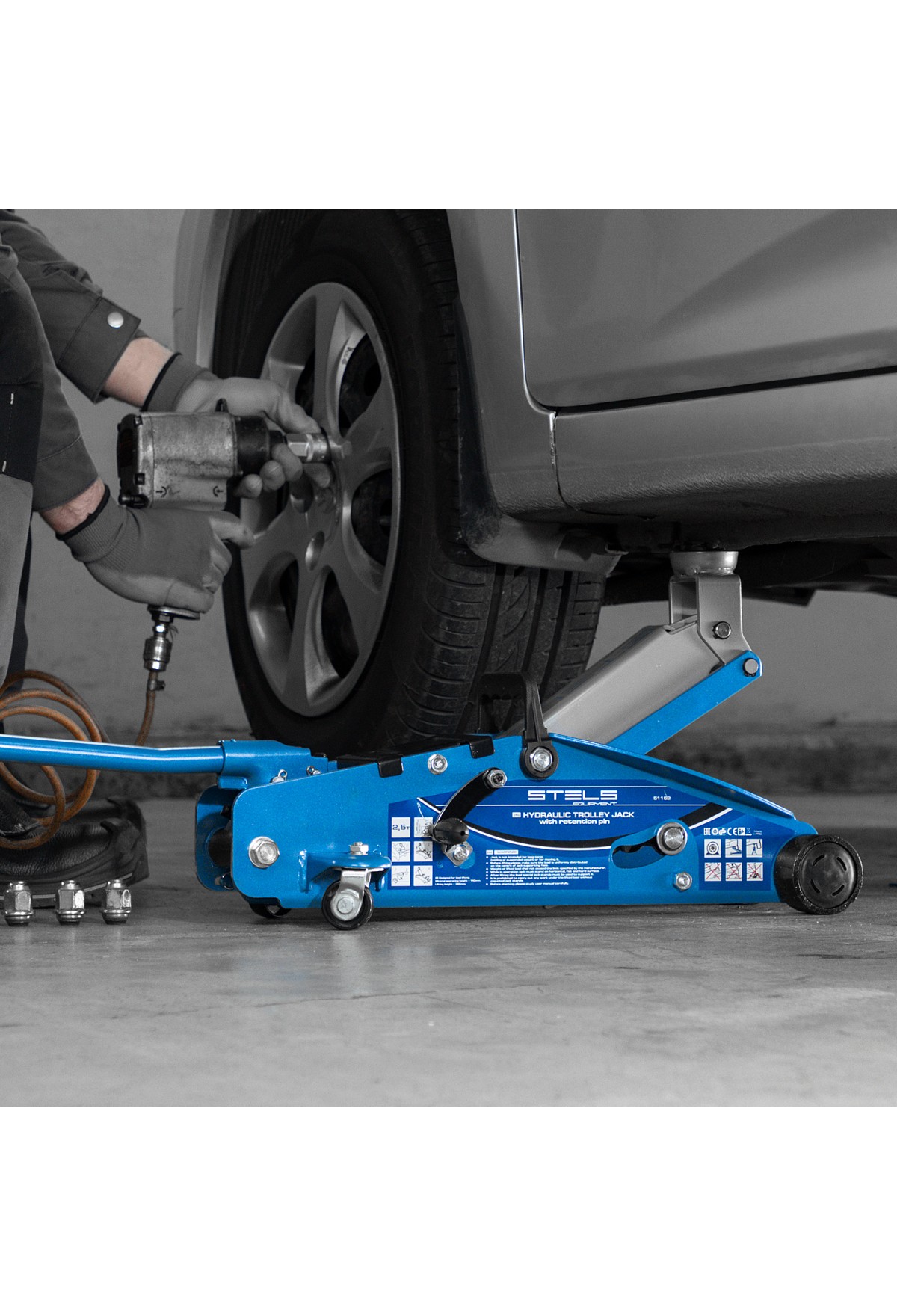 Подкатной гидравлический домкрат Stels Safety Pin 51152 с фиксатором, с высотой подхвата 140 мм, позволяет поднимать грузы весом до 2,5 т на высоту 385 мм. За счет низкого подхвата используется для обслуживания автомашин со стандартным дорожным просветом. Домкрат подходит для самостоятельного обслуживания авто.