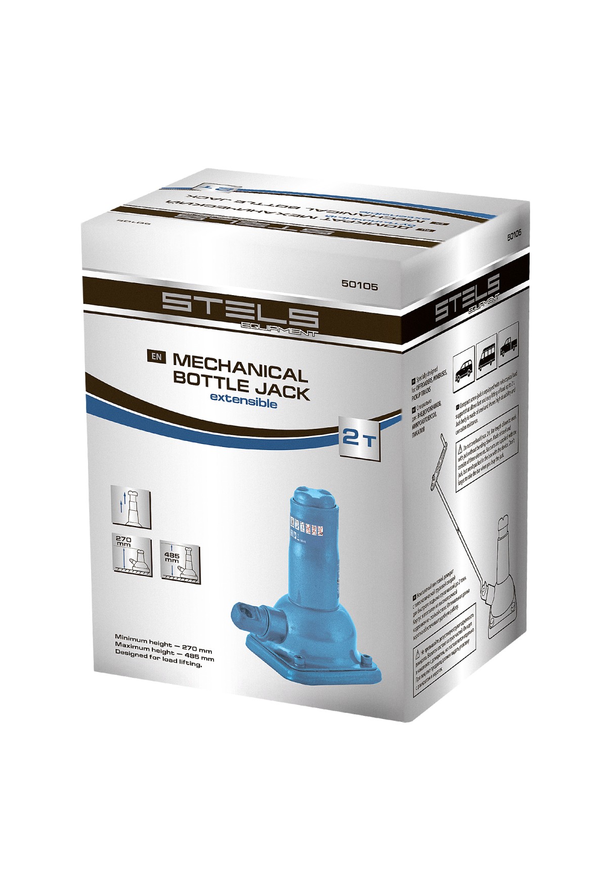 Механический бутылочный домкрат Stels 50105 состоит из 2-х частей: самого домкрата и ручки, имеет телескопический шток и используется для быстрого подъема грузов массой до 2 т на высоту 270-485 мм. В комплект входит вороток из трех частей для работы в труднодоступных местах. Домкрат предназначен для самостоятельного применения, будет полезен владельцам легковых автомобилей в дороге и гараже.