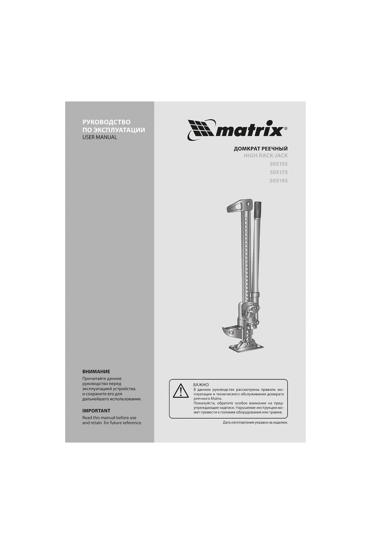 Реечный домкрат Matrix High Jack 505175 позволяет поднимать внедорожники и грузовики весом до 3 т на высоту 135-1016 мм. Пригодится во время ремонта автомобилей. Несущая рейка дополнена зацепной петлей, поэтому домкрат можно использовать как ручную лебедку или стягивающее устройство.