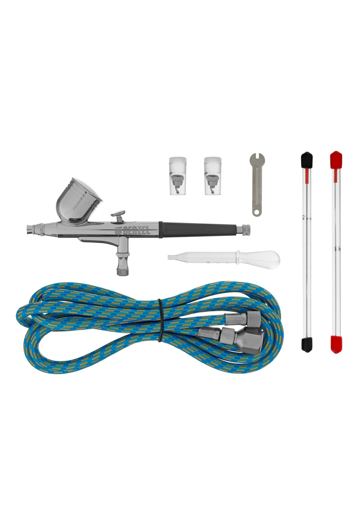 | Комплектация | Аэрограф - 1 штДозатор - 1 штШланг для аэрографа - 1 штНабор сменных сопел - 2 штГаечный ключ - 1 штНабор сменных игл - 2 штКейс - 1 штРуководство по эксплуатации и гарантийный талон - 1 шт |