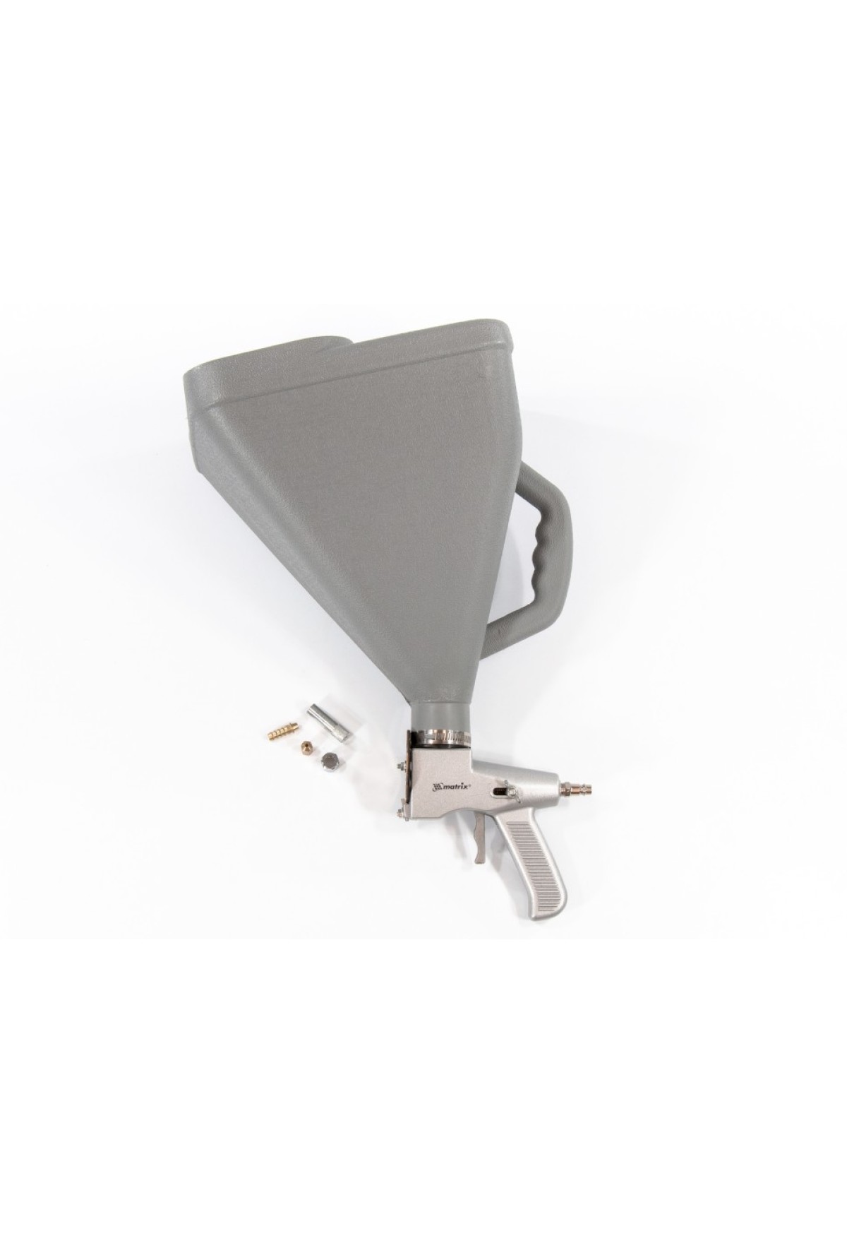 Картушный пистолет для штукатурки Matrix 57350 используется на финишном этапе отделочных работ. Комплектуется насадкой с соплами разного диаметра: 7/32, 1/4, 9/32, 5/16, 11/32, 3/8 и 13/32 дюйма, поэтому подходит для нанесения различных составов: гранитной и мраморной крошки, грунтовки, красок повышенной вязкости, шпатлевки и жидких обоев.