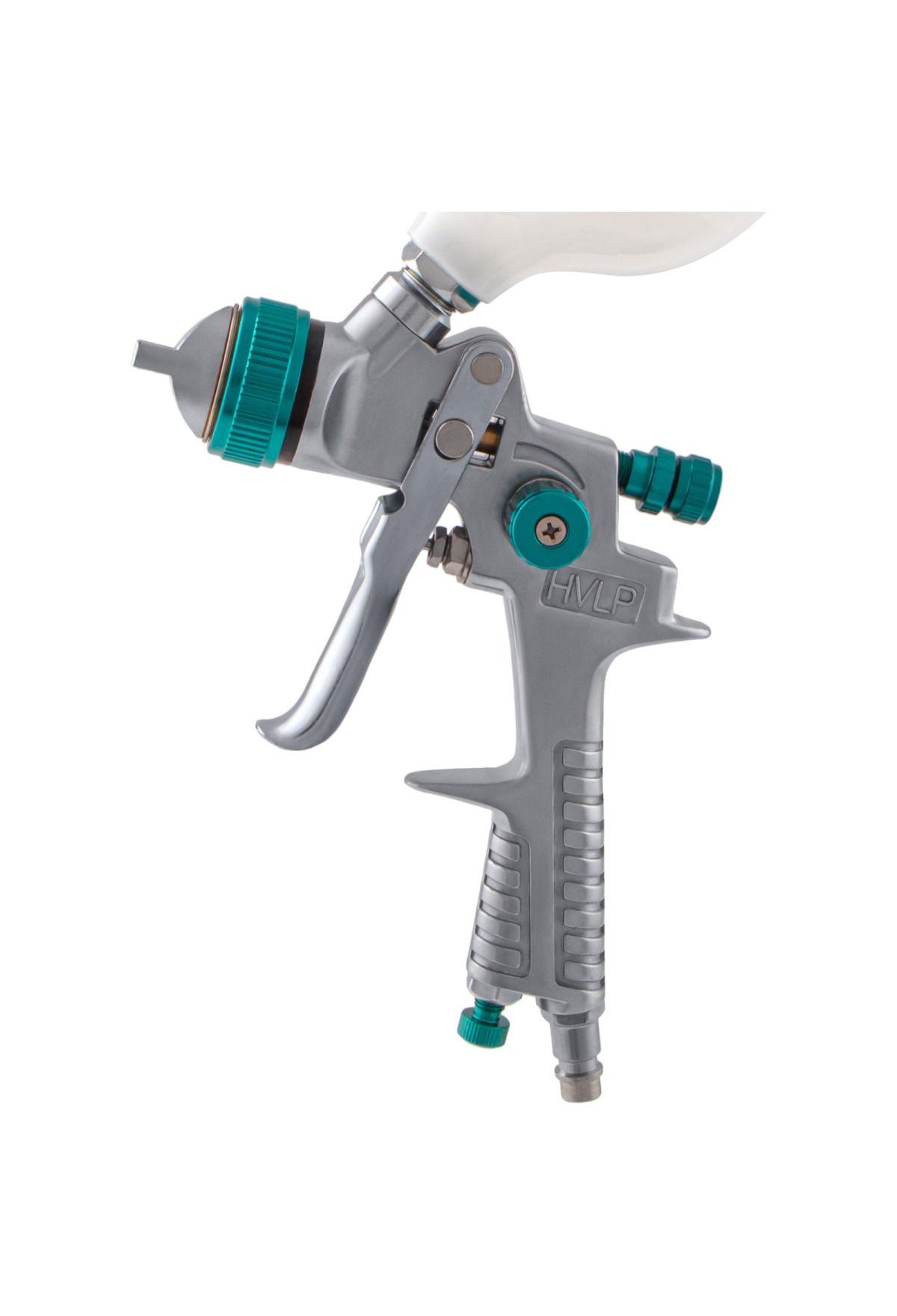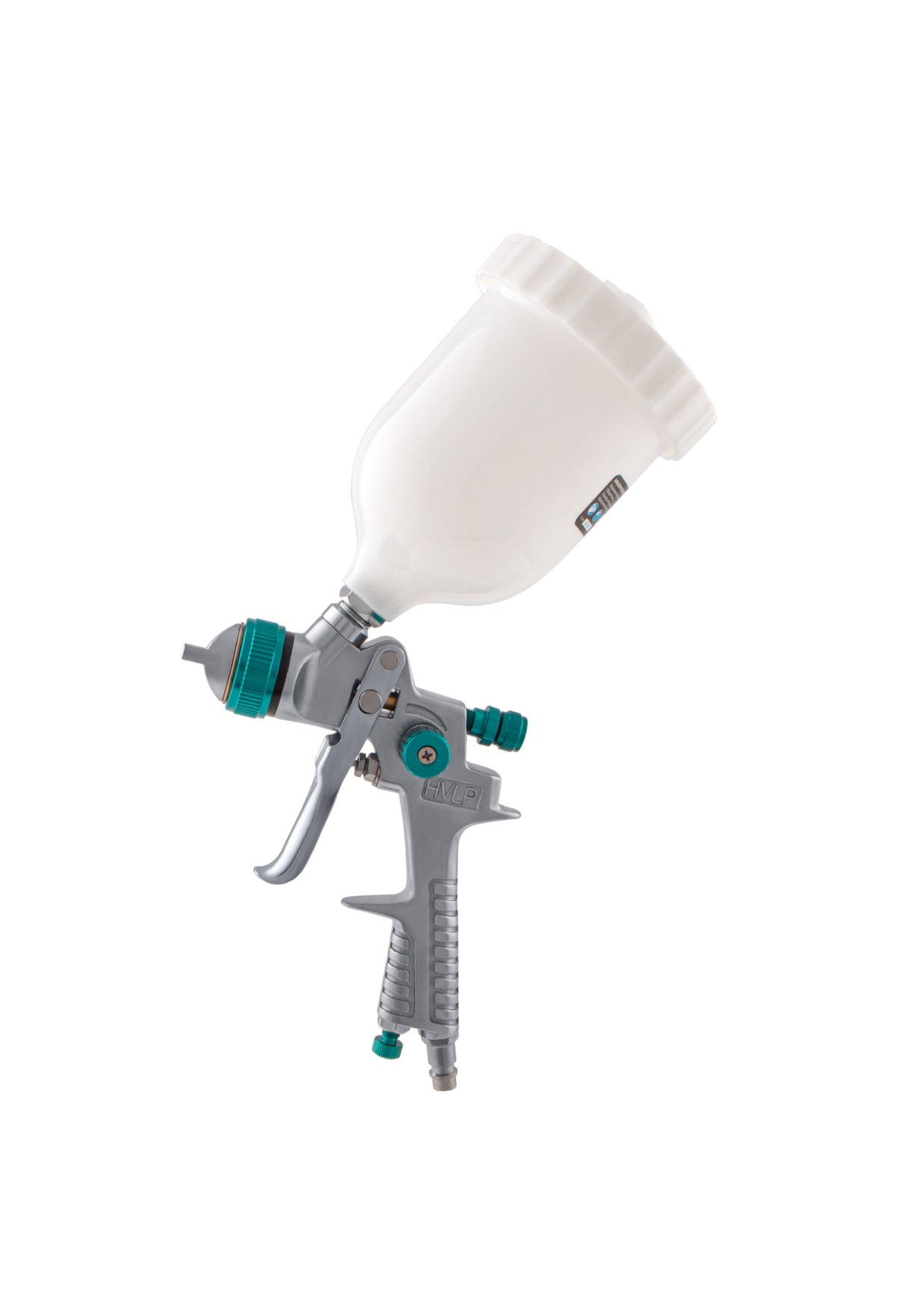 - Мобильность — краскопульт оснащен пластиковым бачком для лакокрасочных материалов объемом 0,6 л, поэтому подключение к большой емкости не требуется.