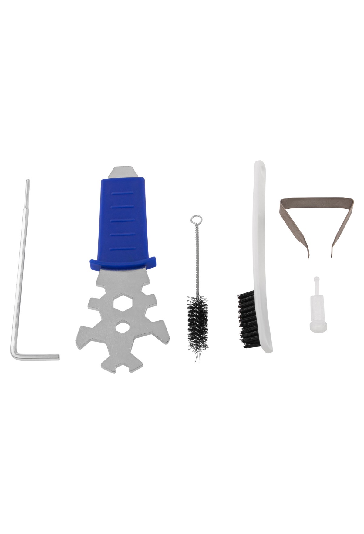 - Необходимые аксессуары в комплекте — краскопульт поставляется с дюзовым набором диаметром 1,3 мм, ершиком для очистки и универсальным ключом.