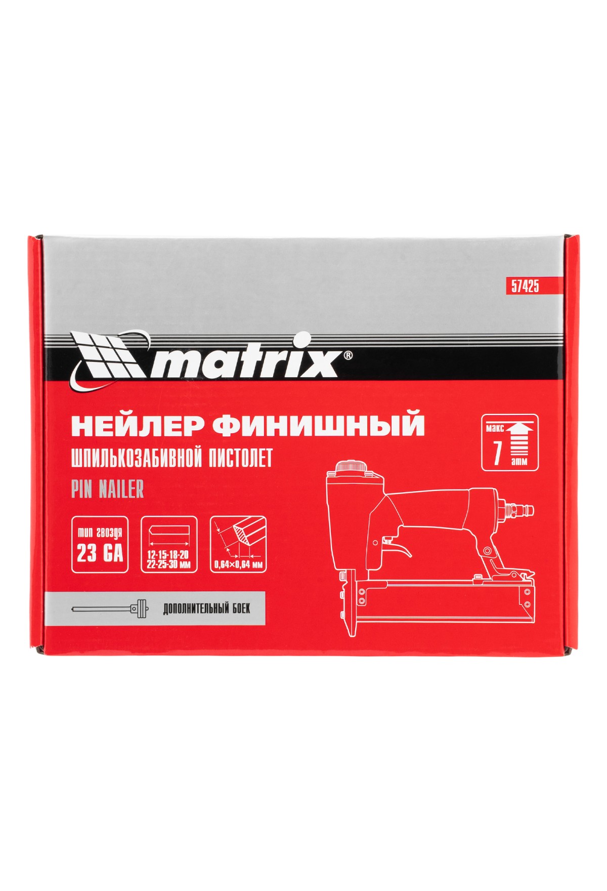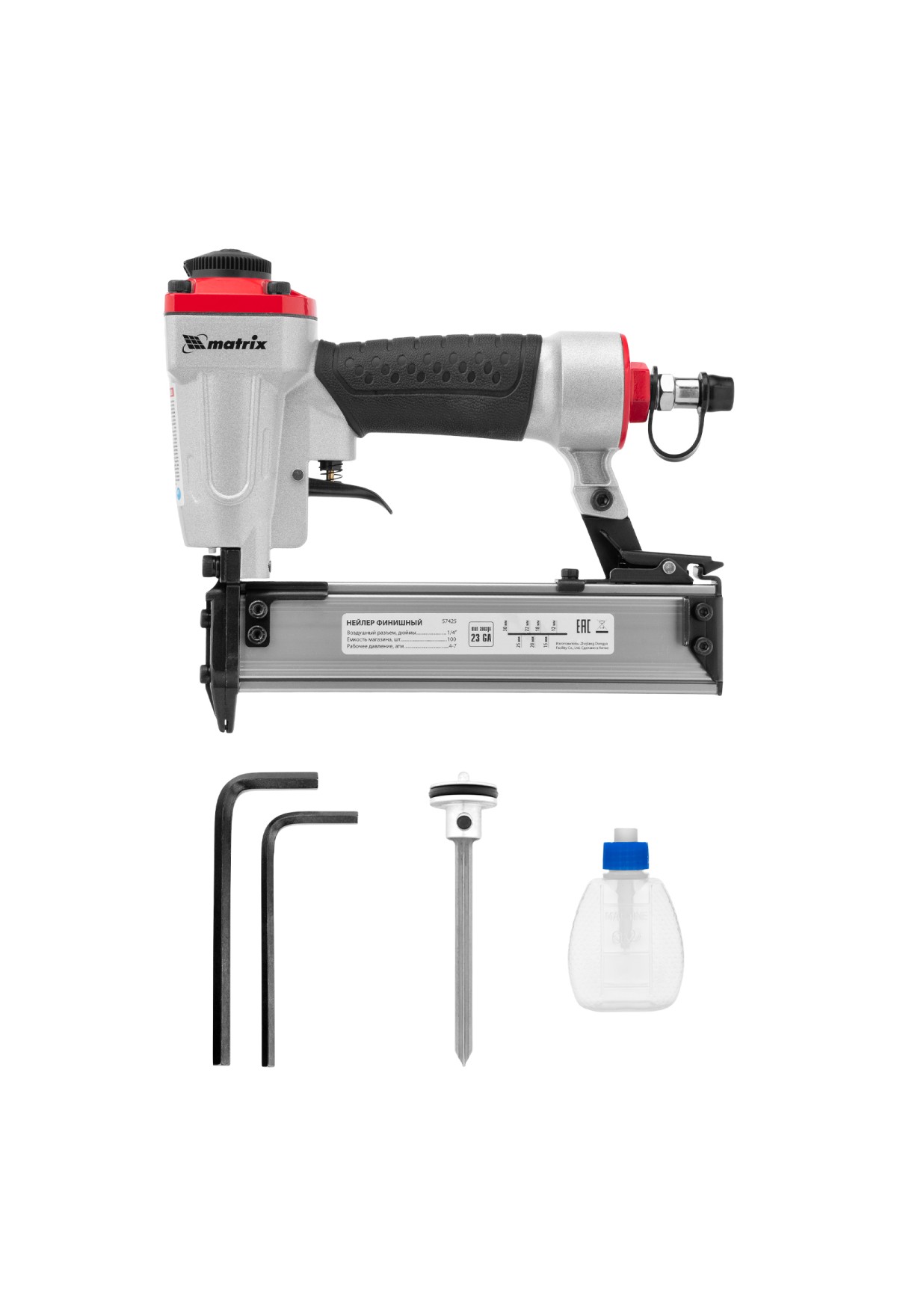 Нейлер финишный, шпилькозабивной пистолет, пневматический, гвоздь 23GA D 0.64 мм длина 10-30 мм Matrix
