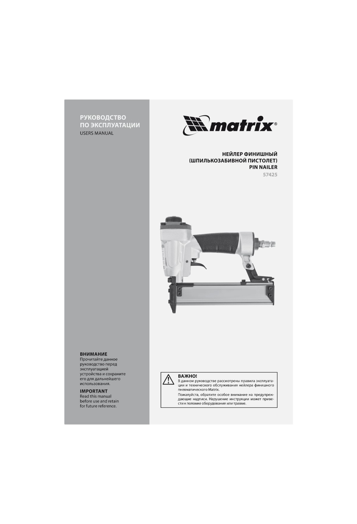 Технические характеристики Нейлер финишный, шпилькозабивной пистолет, пневматический, гвоздь 23GA D 0.64 мм длина 10-30 мм Matrix