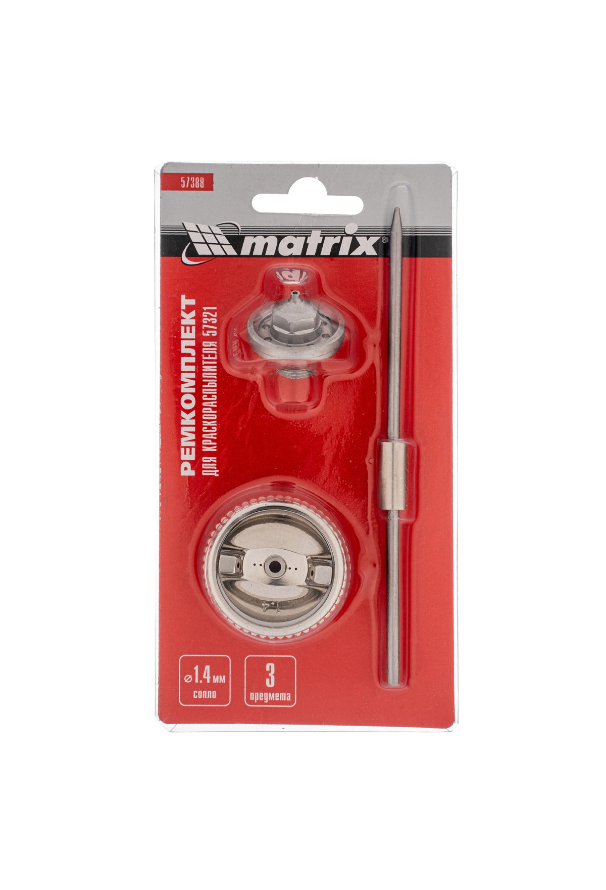 Комплект Matrix 57388 для краскораспылителя Matrix 57321 включает в себя 3 предмета: сопло диаметром 1,4 мм, иглу и форсунку. Их можно использовать для ремонта инструмента или расширения его функциональных возможностей.
