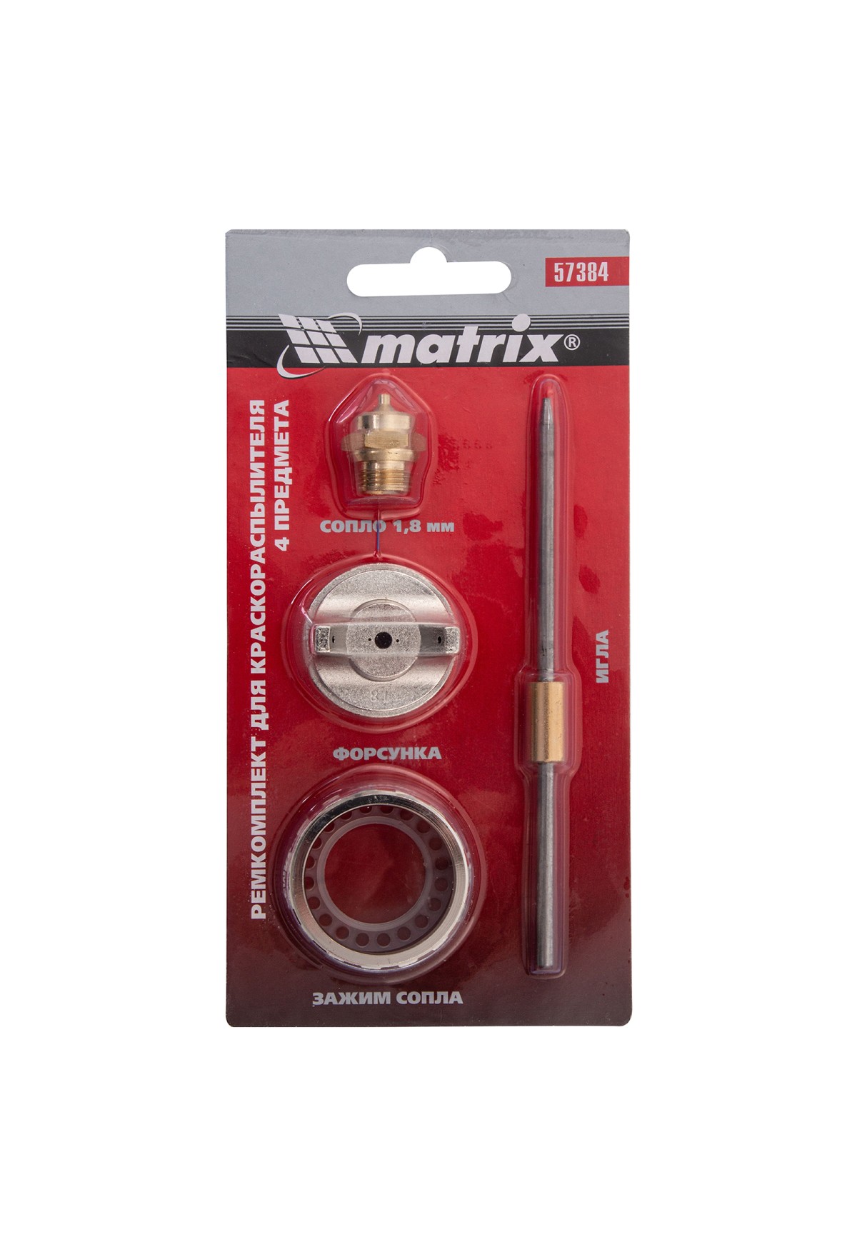 Ремкомплект для краскораспылителя 4 предмета : сопло 1.8 мм + игла + форсунка + зажим сопло Matrix