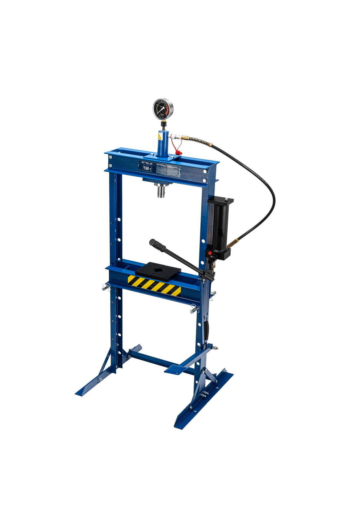 Гидравлический пресс Stels 52312 с манометром и педалью поставляется комплектом из 2 частей и способен воздействовать на предметы с усилием до 12 т. Его используют для монтажа и демонтажа различных деталей — подшипников, сайлентблоков, втулок, штифтов, рычагов. Шток имеет исключительно плавный ход благодаря высокому уровню исполнения гидравлического насоса и самого штока. Для нагнетания давления можно использовать как ручной, так и ножной привод, что облегчает работу. Пресс пригодится для ремонта автомобилей — самостоятельного или в автосервисе.