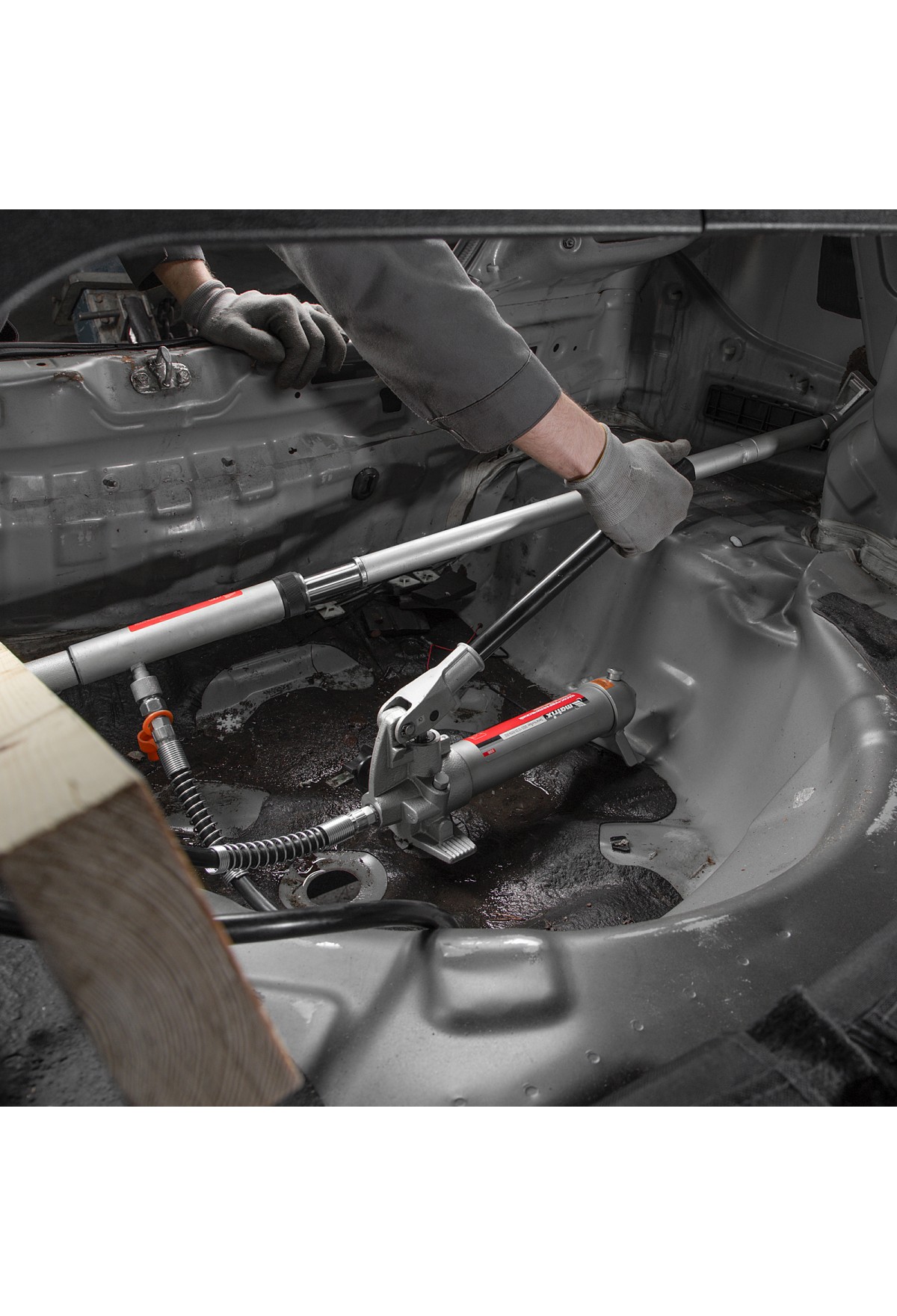 Гидравлическая растяжка Matrix 513405, рассчитанная на усилие до 10 т, входит в набор из 17 предметов — гидронасоса, цилиндра, удлинителя, опорной площадки, адаптера и 7 сменных насадок в пластиковом кейсе. Используется для восстановления геометрии металлических изделий. Можно выбрать оптимальную насадку в зависимости от марки автомобиля, а также области и степени повреждения. Растяжка будет полезна для выполнения кузовных работ и рихтовки металлоконструкций.