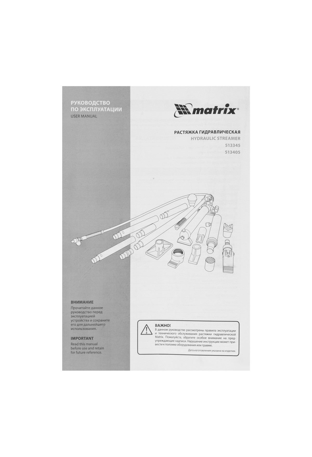 Технические характеристики Растяжка гидравлическая, 10 т, набор из 17 предметов, 7 сменных насадок, в пластиковом кейсе Matrix