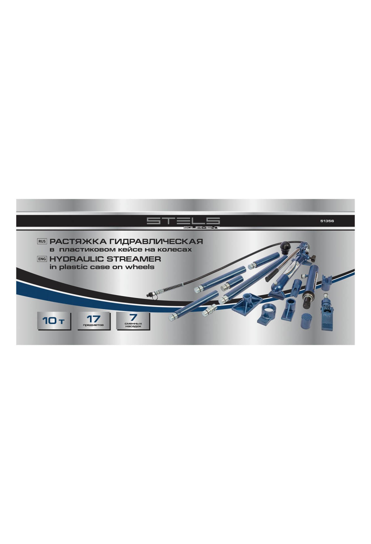 Гидравлическая растяжка Stels 51356, рассчитанная на усилие до 10 т, — компактный набор в пластиковом кейсе на колесах, включающий 17 предметов — цилиндр, гидронасос, адаптер, удлинители, опорную площадку и 7 сменных насадок. Ее используют для рихтовки металлических конструкций и проведения кузовного ремонта. Растяжка эффективно восстанавливает геометрию проемов автомобильных окон и дверей, а также больших участков кузова. Пригодится в автосервисе, будет полезна в гараже.