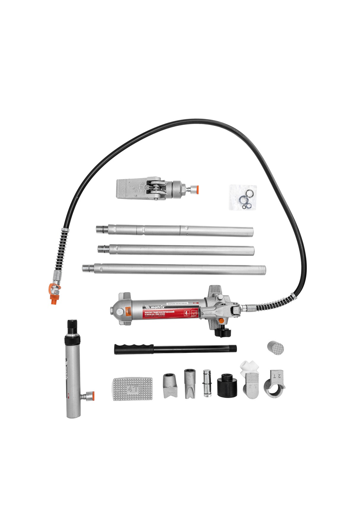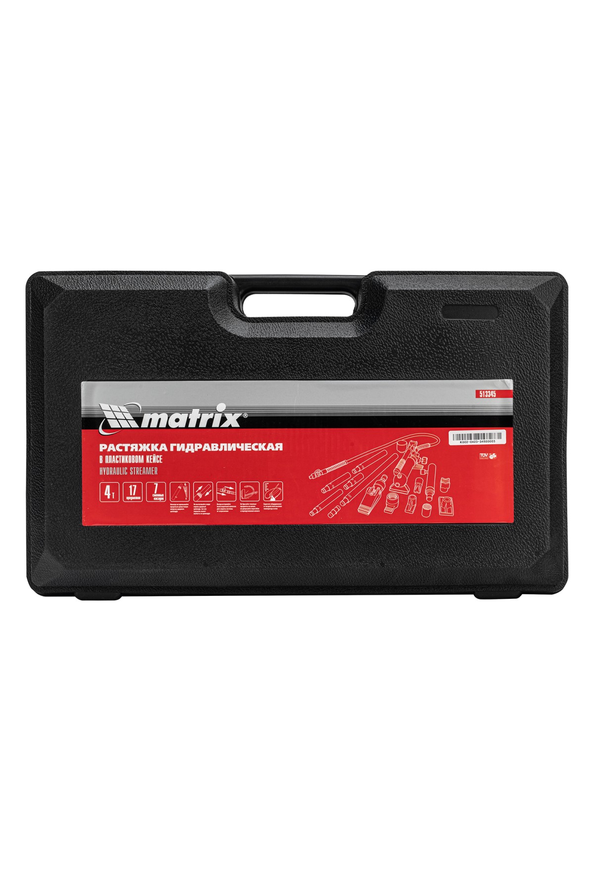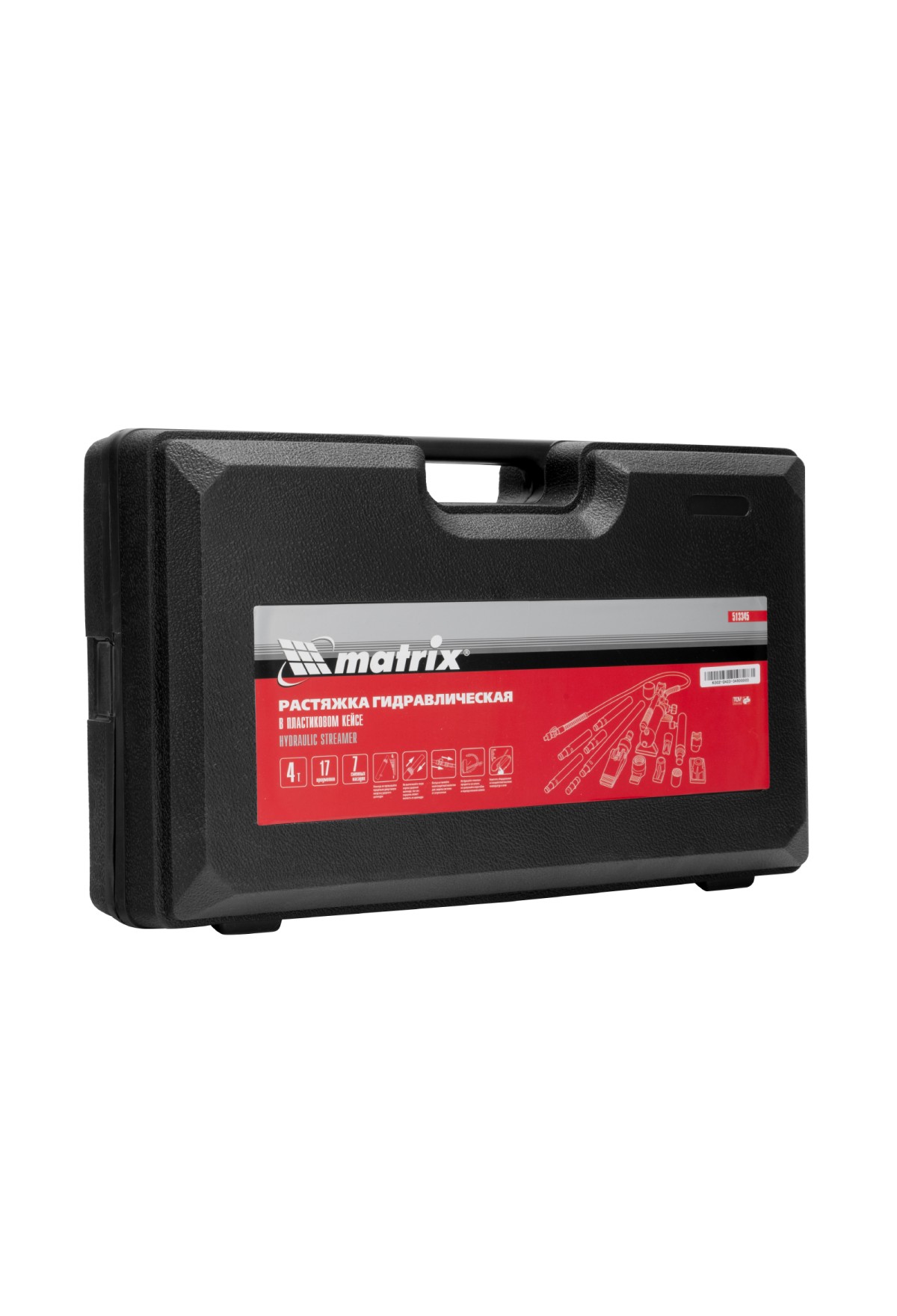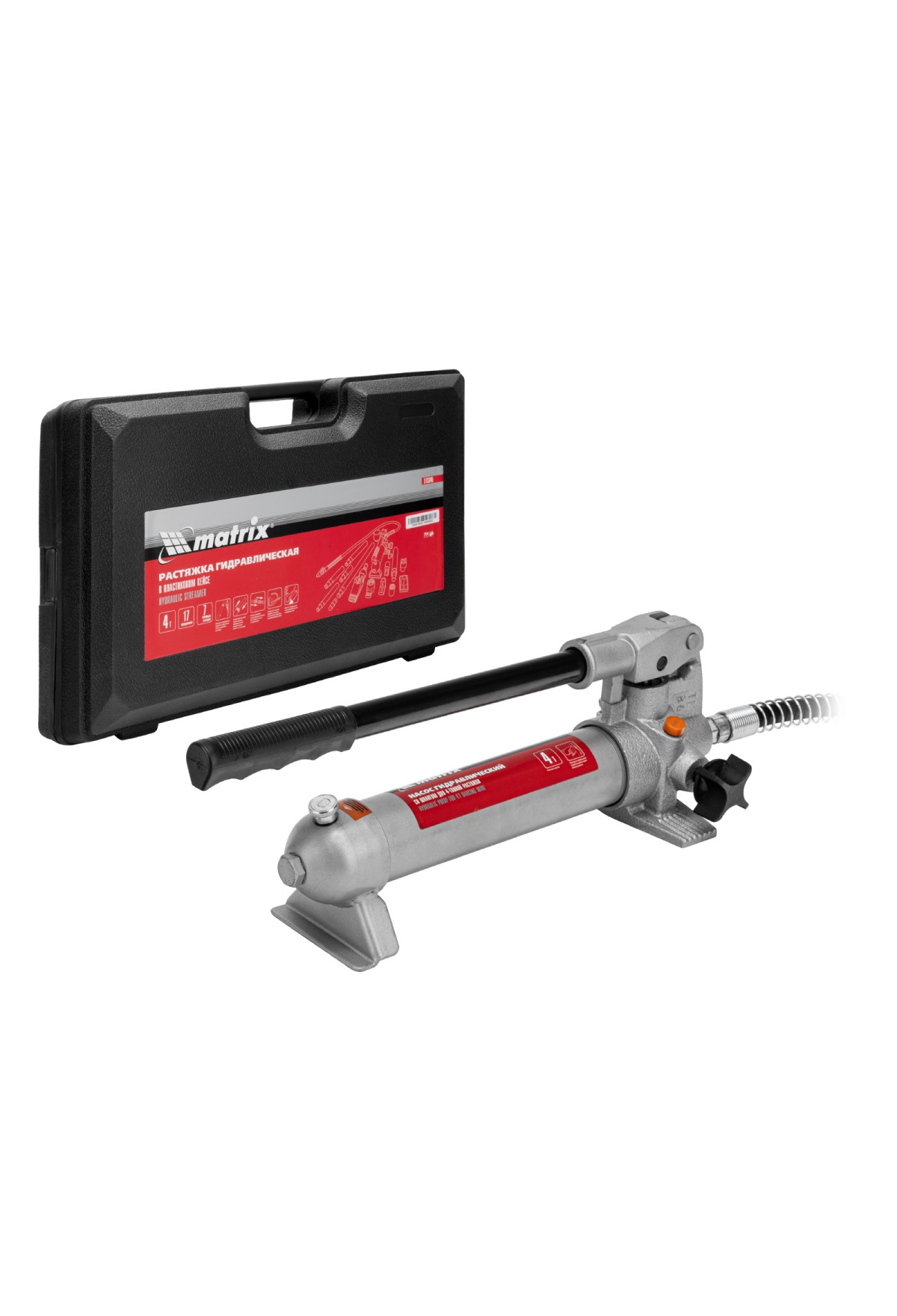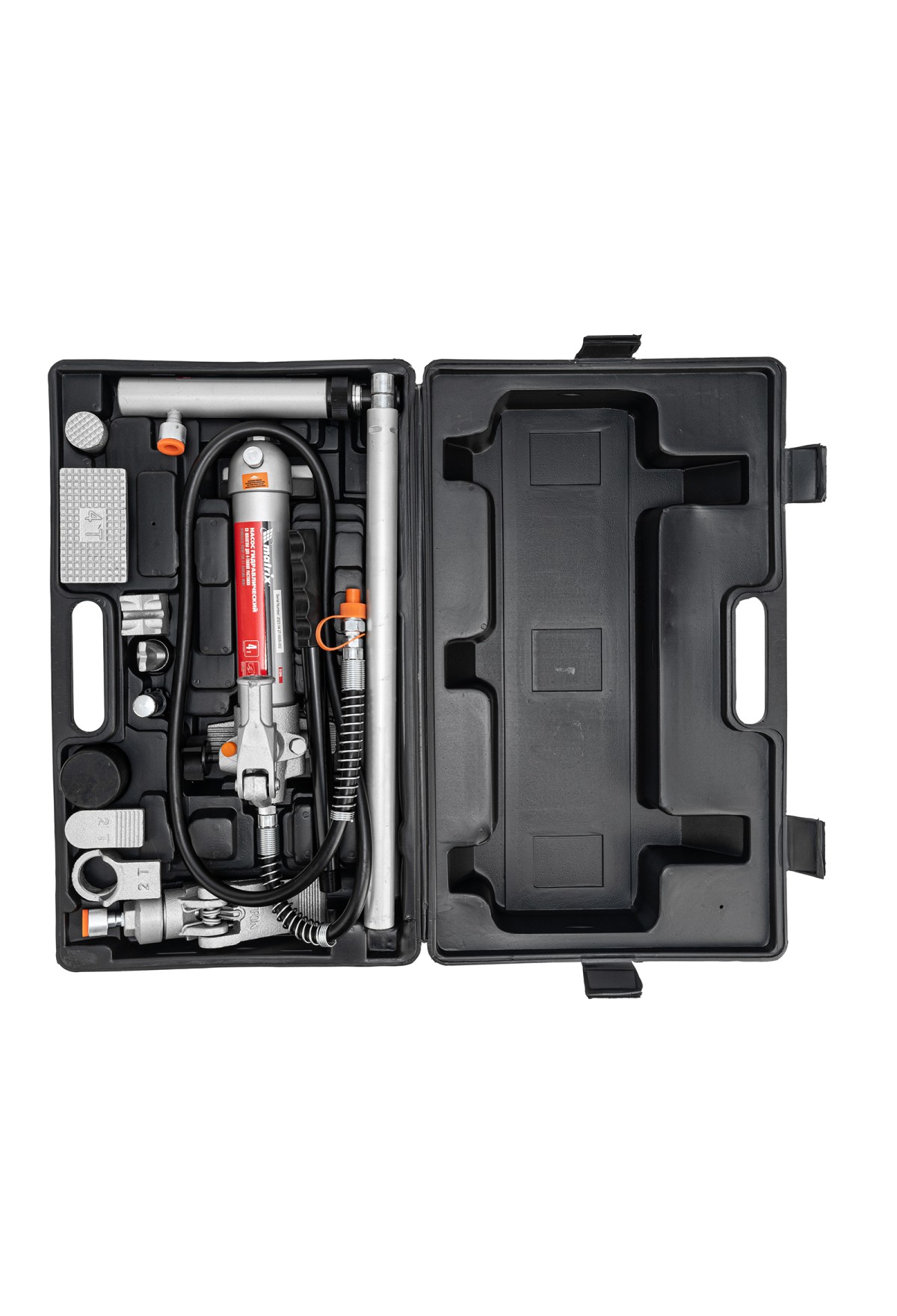 Технические характеристики Растяжка гидравлическая, 4 т, набор из 17 предметов, 7 сменных насадок, в пластиковом кейсе Matrix