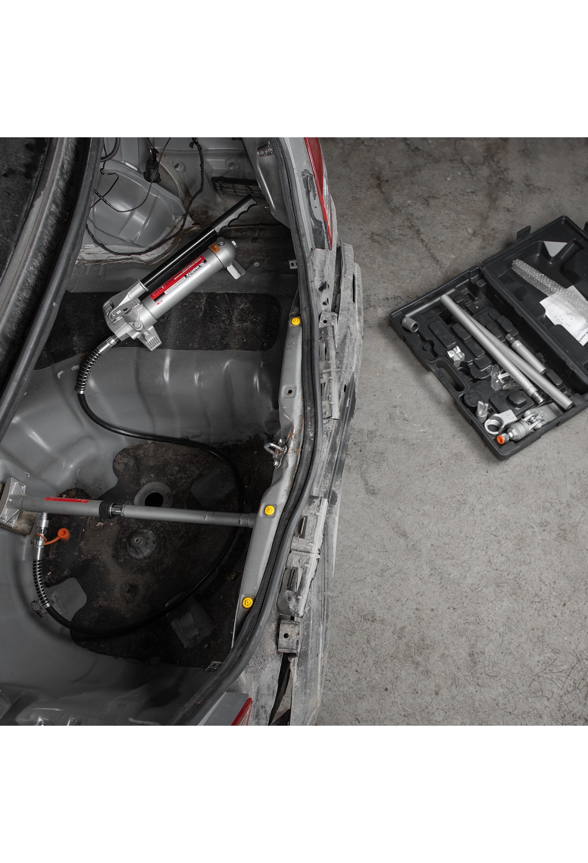 Комплектация Растяжка гидравлическая с насадками - 1 штПластмассовый кейс - 1 штРемонтный комплект прокладок - 1 штРуководство по эксплуатации - 1 шт