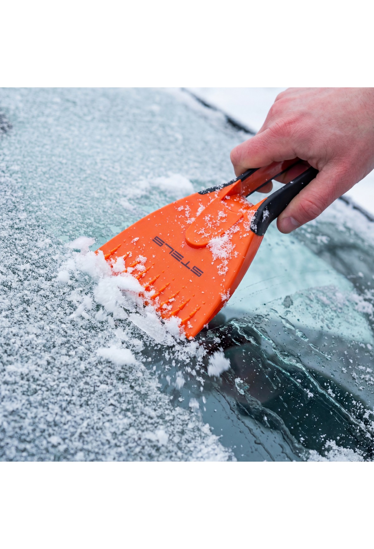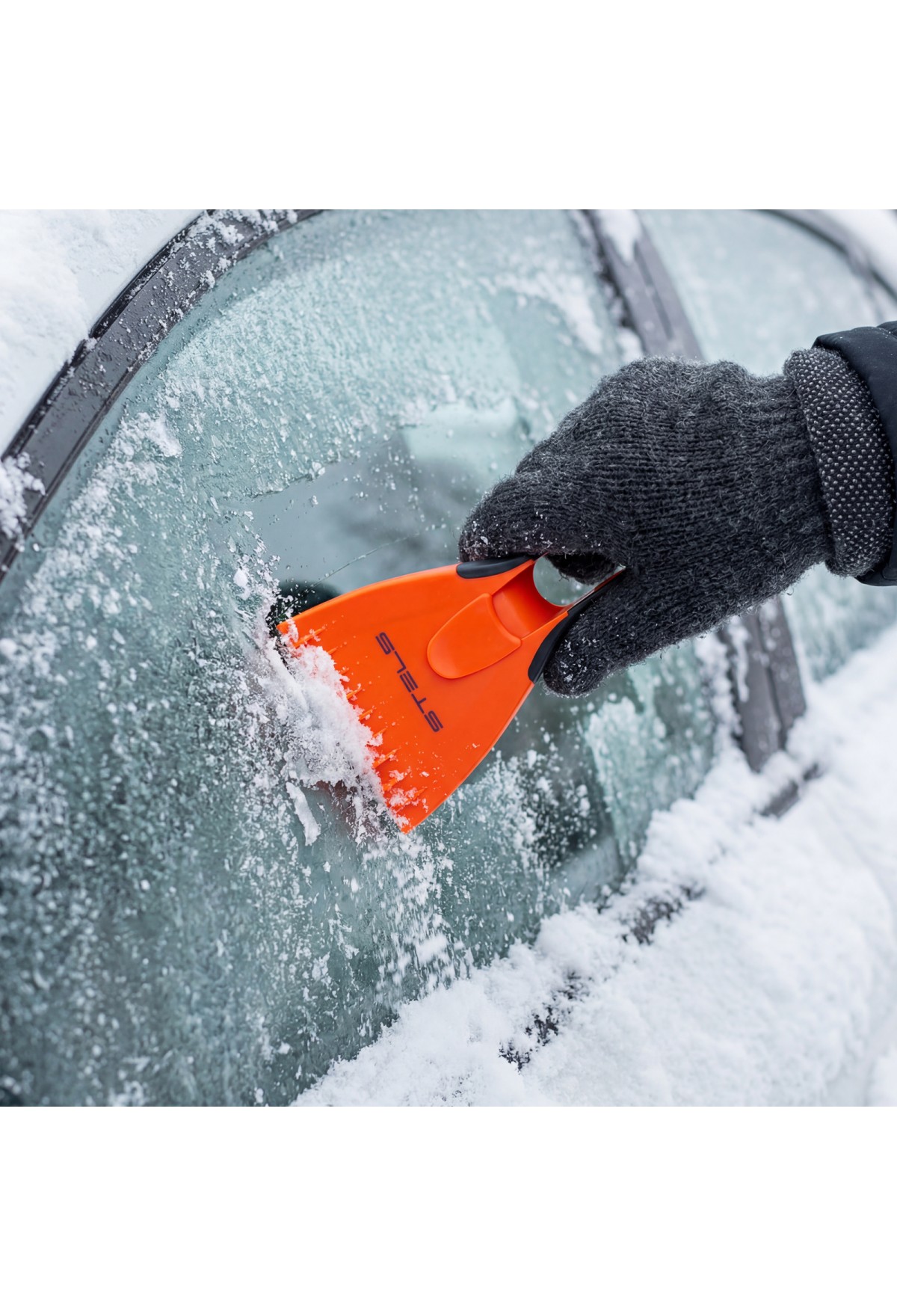 Скребок для льда Stels 55286 с двухкомпонентной рукояткой помогает удалять снег и наледь со стекол, зеркал и кузова автомобиля. За счет своей портативности он легко помещается в бардачке.