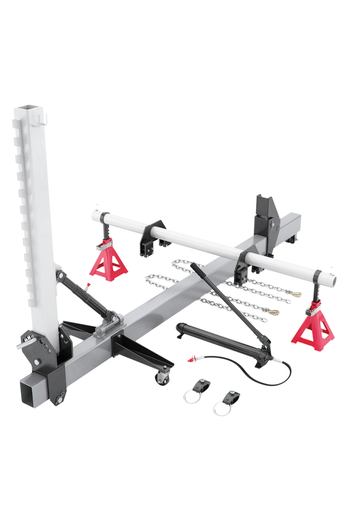 • Конструкция состоит из основной балки со стопором и подвижной балки, приводимой в движение посредством гидроцилиндра и насоса, а также поперечной трубы со стойками.