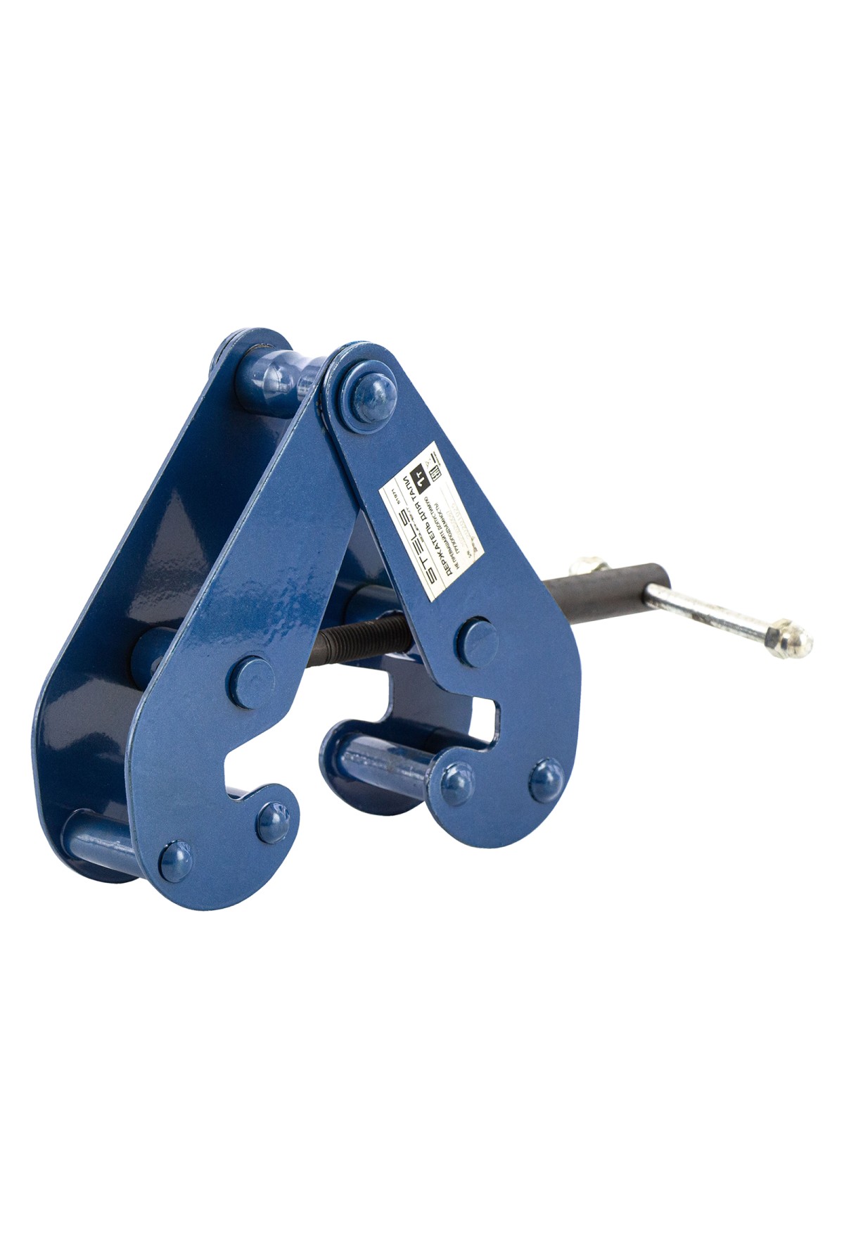 Держатель для тали Stels 51971 позволяет зафиксировать ее на балке шириной от 75 до 220 мм для подъема грузов весом до 1 т. Благодаря симметричной конструкции держателя нагрузка распределяется равномерно по центру балки, что повышает надежность грузоподъемной системы.