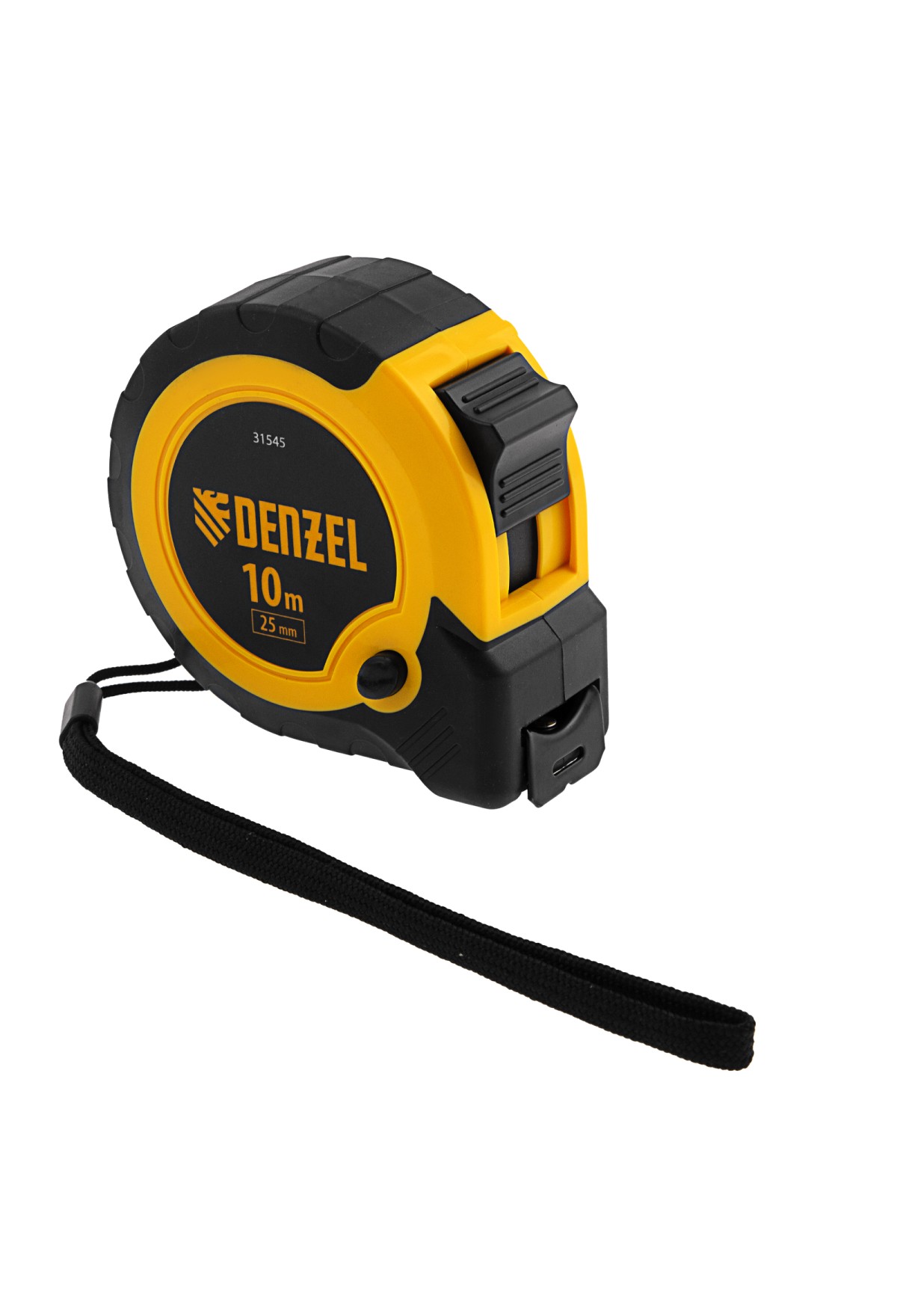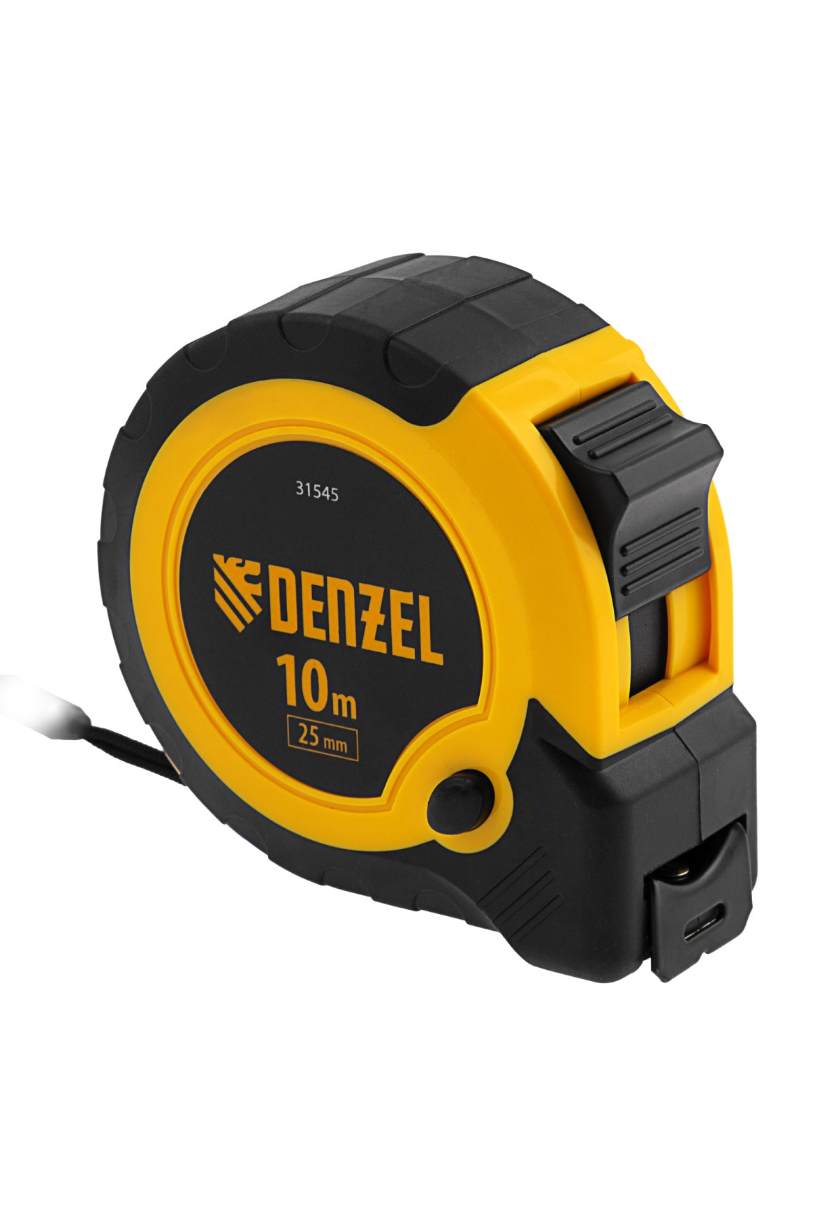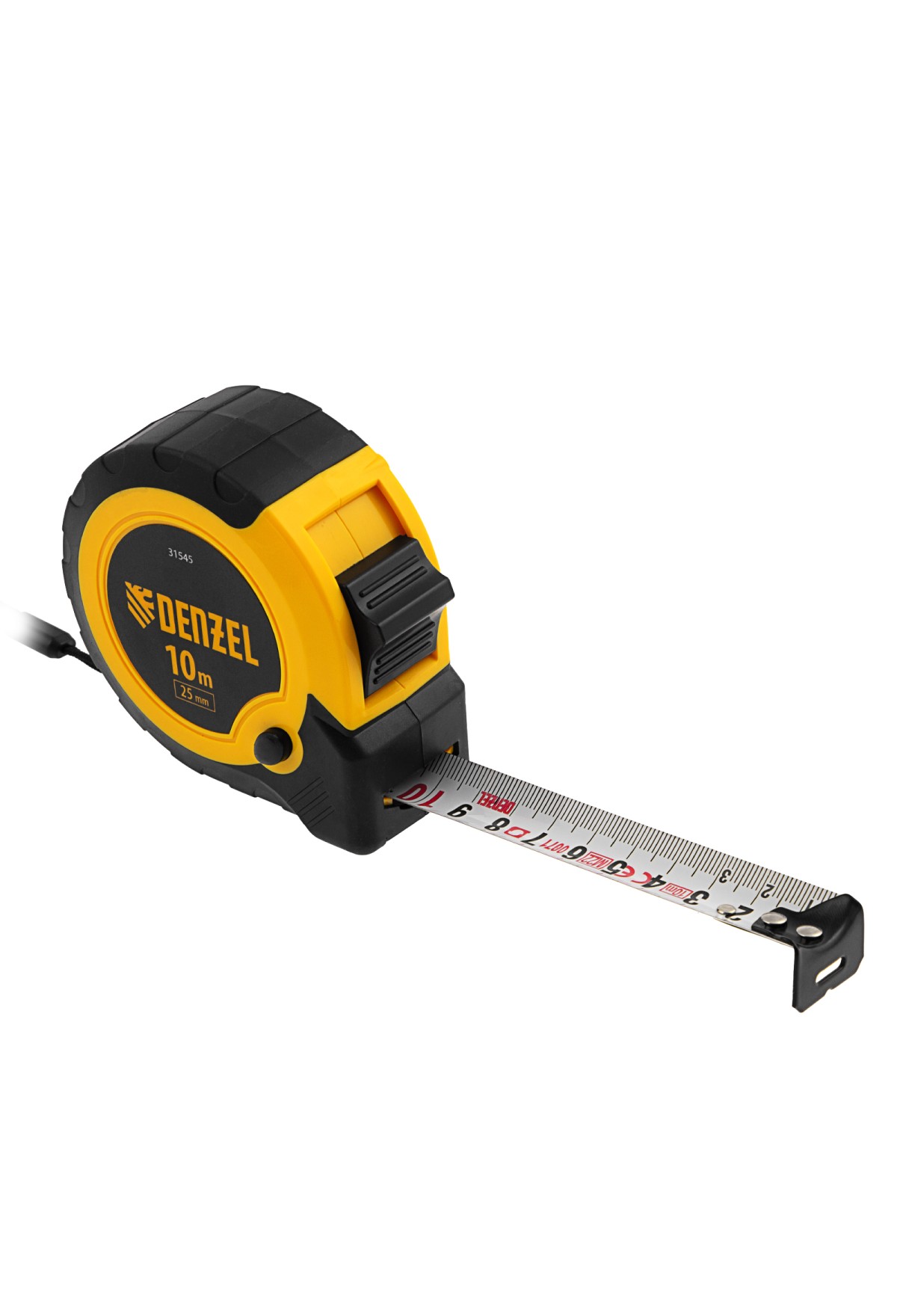 Рулетка Denzel 31545 в двухкомпонентном корпусе, с кнопкой-паузой, с полотном шириной 25 мм и длиной 10 м, используется для измерения расстояний и размеров предметов. Удобна для работы в труднодоступных местах. Стальная лента с эмалевым покрытием и защитной пластиной в месте крепления зацепа рассчитана на долгий срок службы. Рулетка будет полезна во время строительства и ремонта, а также пригодится в быту.