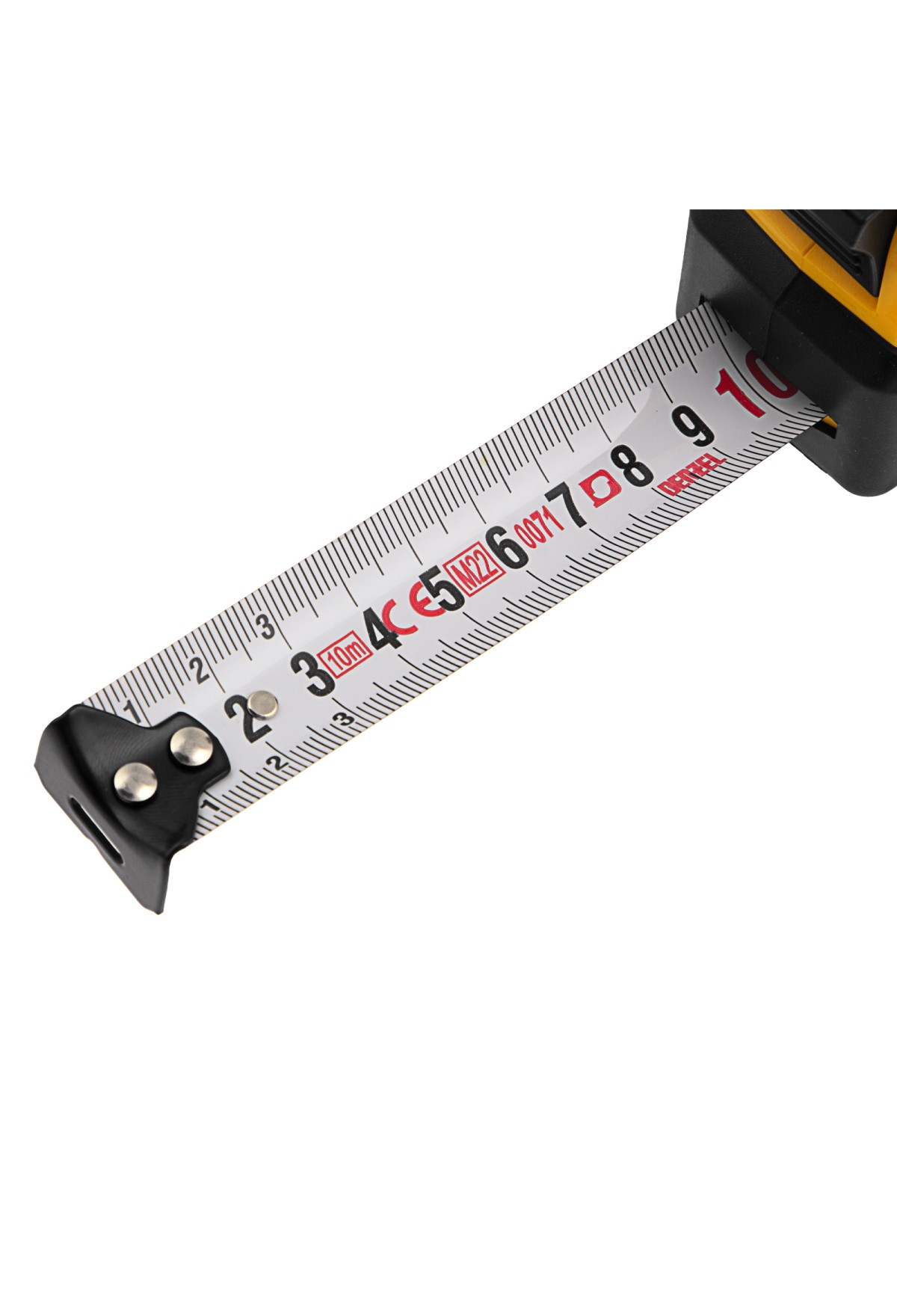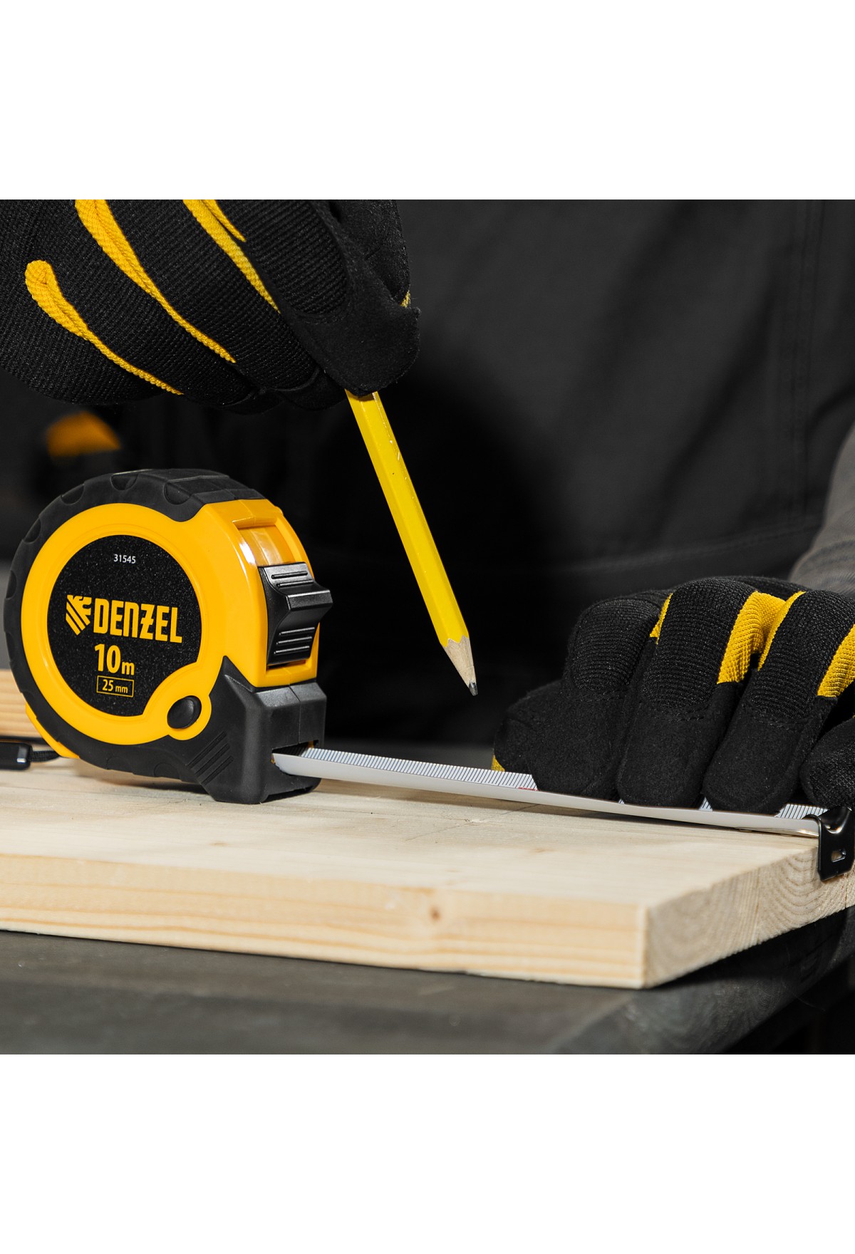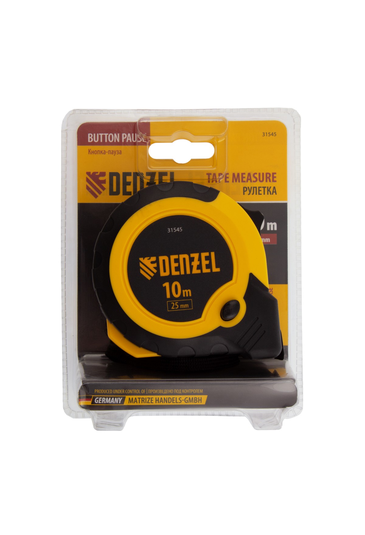 Рулетка Denzel 31545 в двухкомпонентном корпусе, с кнопкой-паузой, с полотном шириной 25 мм и длиной 10 м, используется для измерения расстояний и размеров предметов. Удобна для работы в труднодоступных местах. Стальная лента с эмалевым покрытием и защитной пластиной в месте крепления зацепа рассчитана на долгий срок службы. Рулетка будет полезна во время строительства и ремонта, а также пригодится в быту.