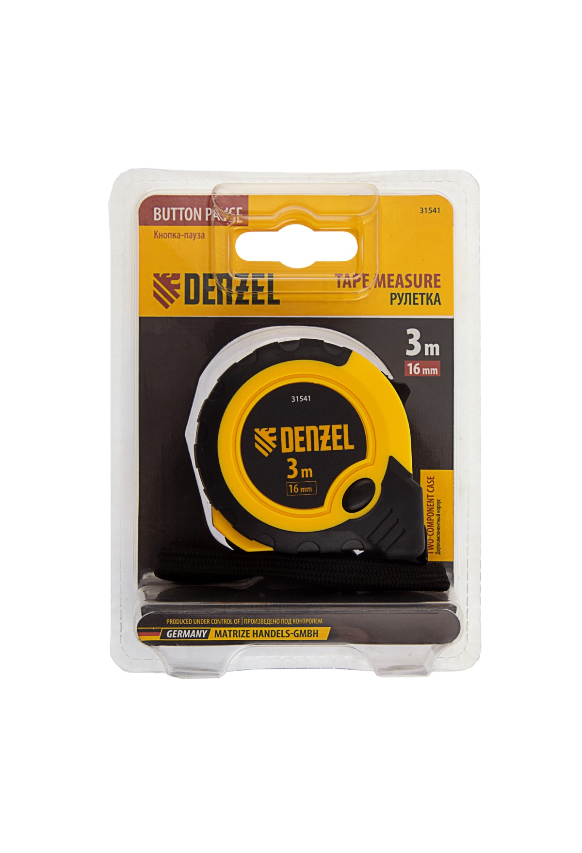 Рулетка 3м х 16мм, двухкомп. корпус, кнопка-пауза// Denzel