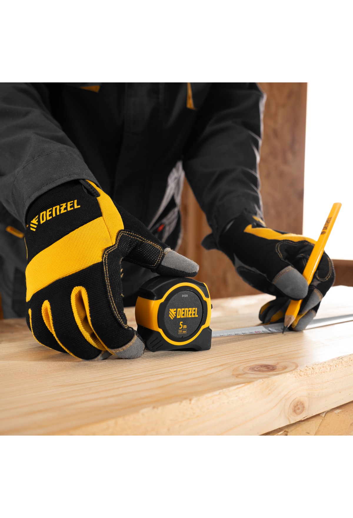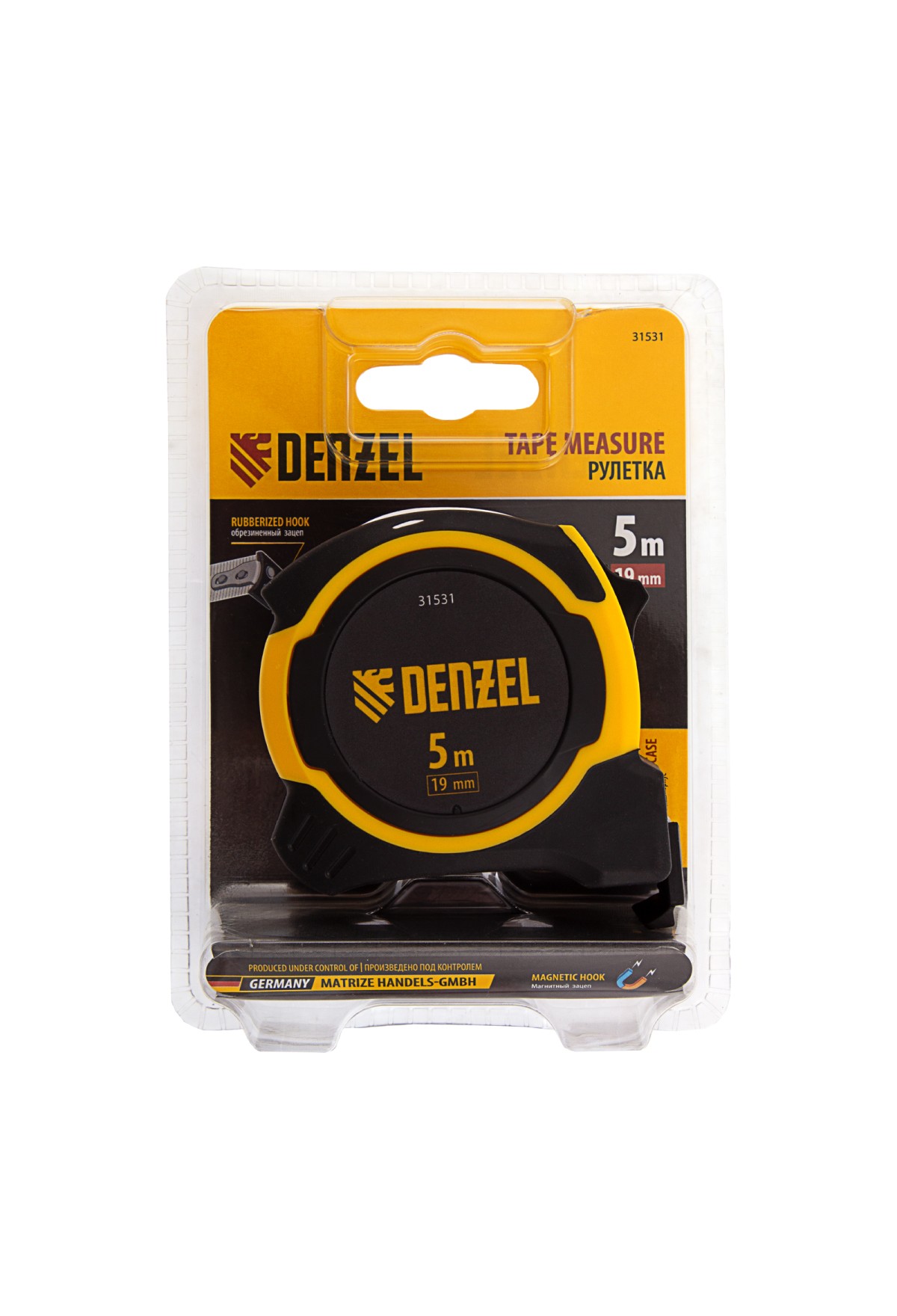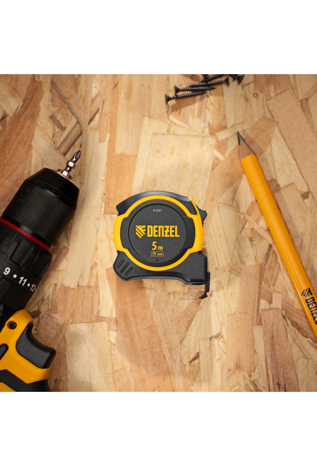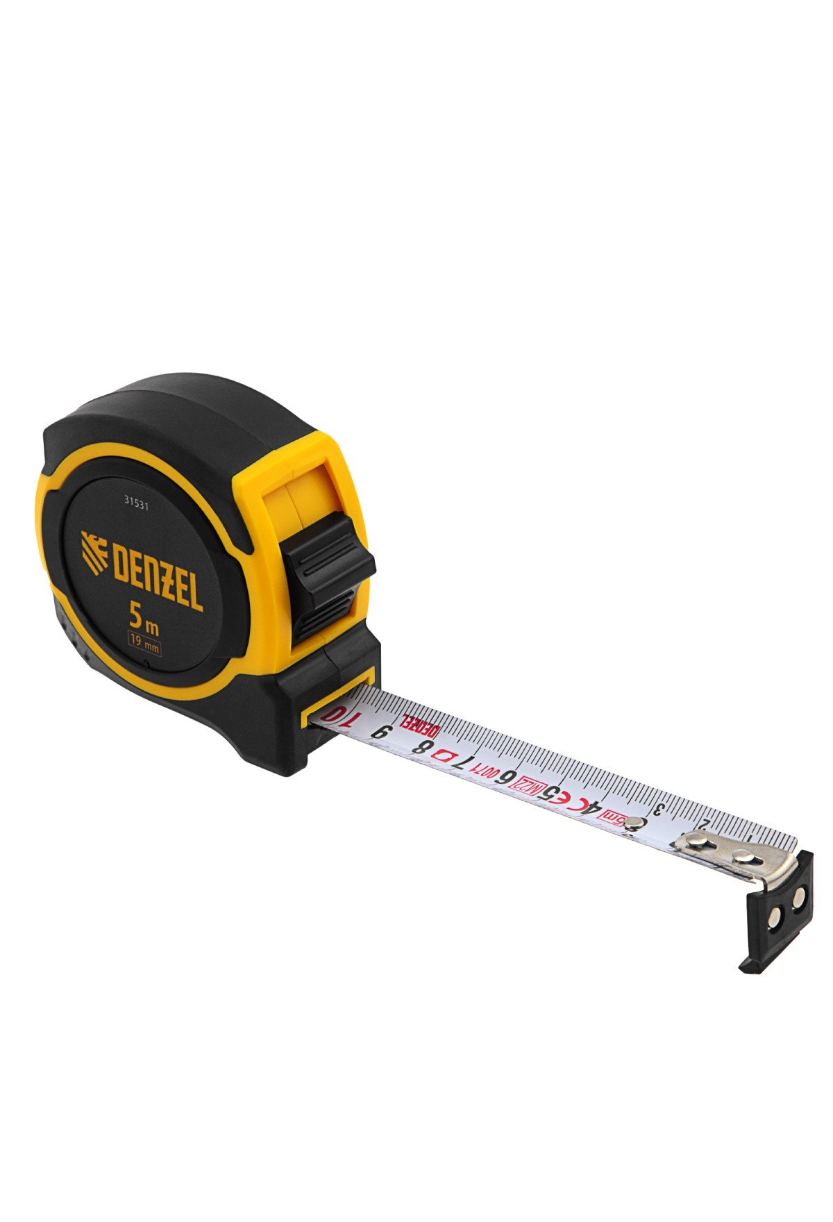 • Рулетка 5м х 19мм, двухкомп. корпус, магнитный обрезиненный зацеп Denzel