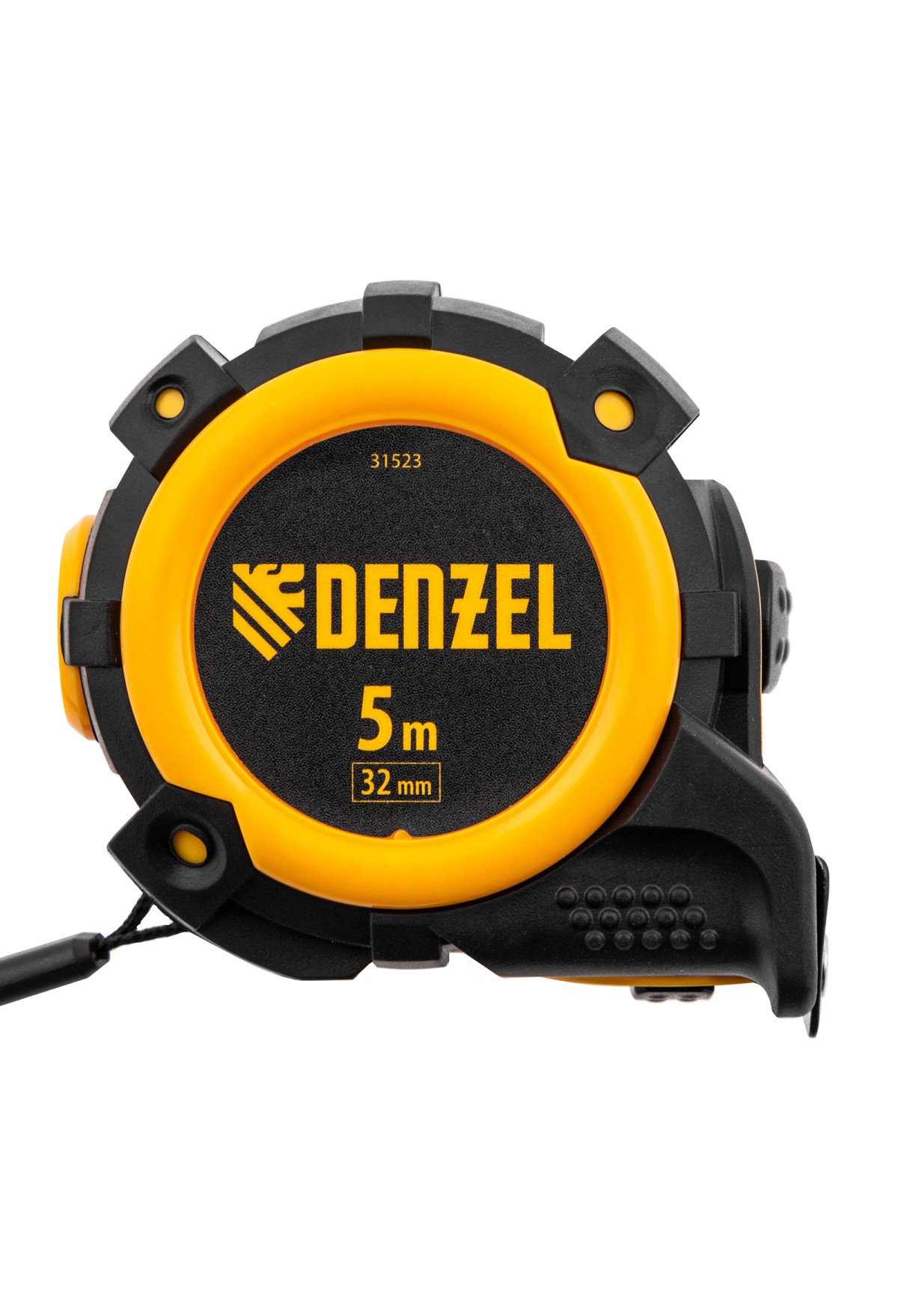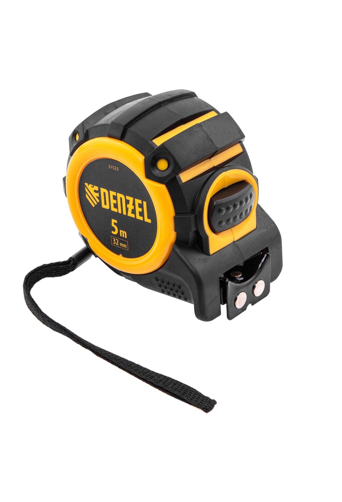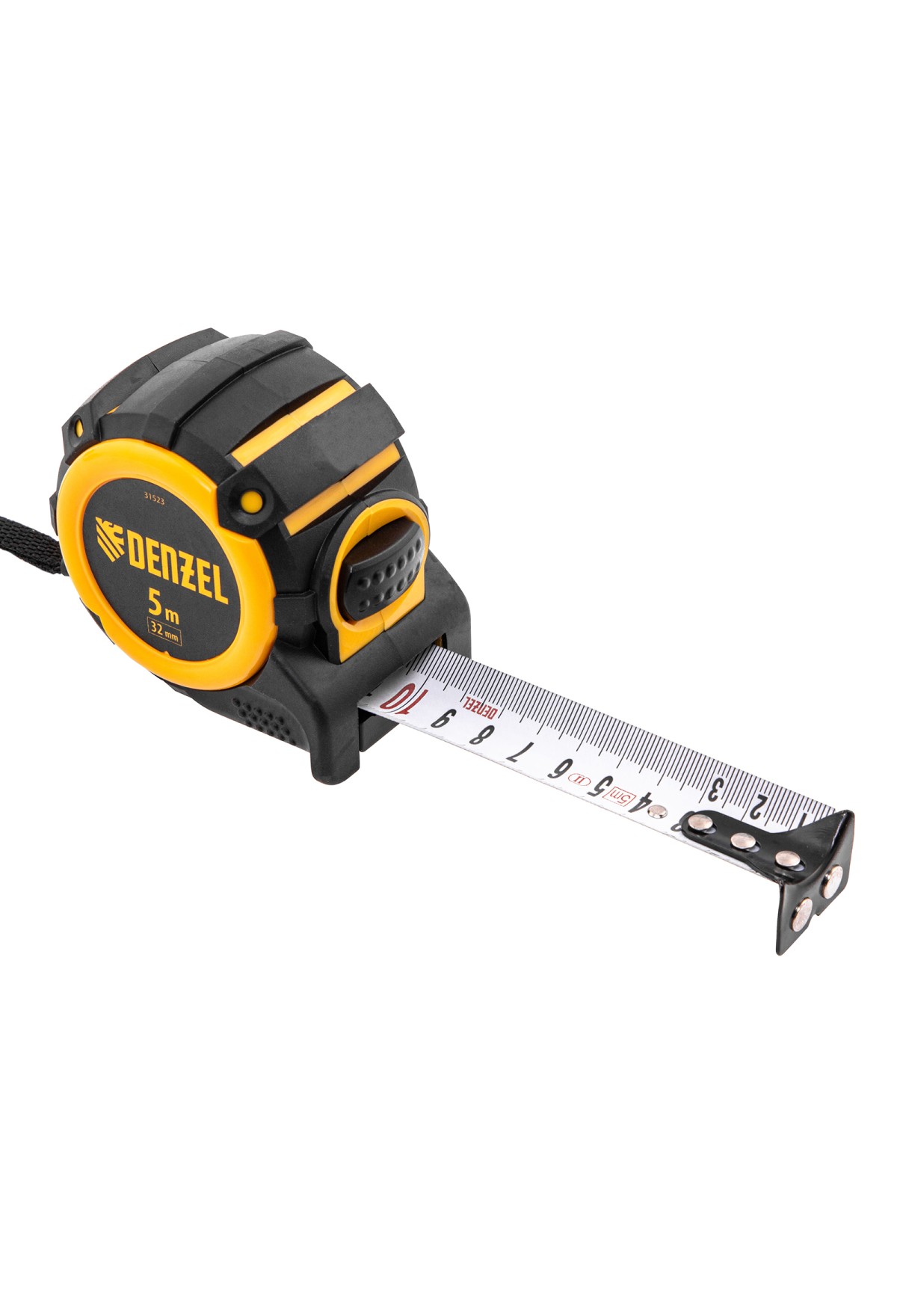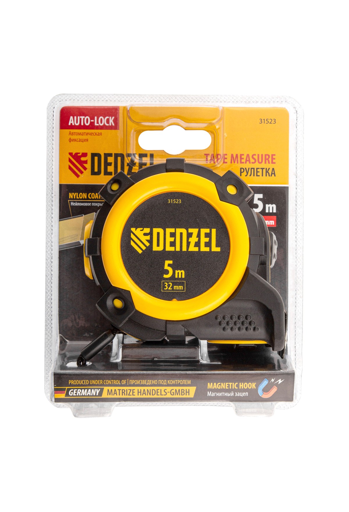 Рулетка Denzel 31523 с автоматической фиксацией полотна размером 5 м х 32 мм, с нейлоновым покрытием, магнитным зацепом и двухсторонней разметкой, предназначена для измерения расстояний и определения габаритов различных предметов. Лента автоматически фиксируется в вытянутом положении, что упрощает работу. Рулетка удобна для работы в труднодоступных местах, будет полезна во время строительных и ремонтных работ.